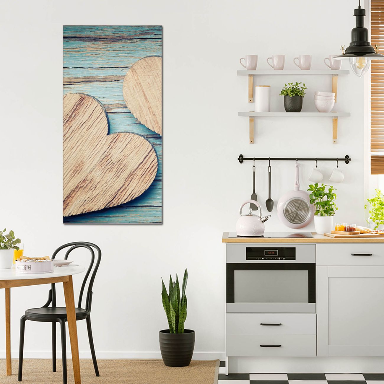Unsere brillanten Glasbilder im Hochformat von banjado mit Motiv Holz Herzen sind der absolute Hingucker! Unsere Banjado Glasbilder sind sehr begehrt, weil sie top verarbeitet sind und sich ganz leicht montieren lassen. Schon mit wenigen Handgriffen hängen sie an der Wand und strahlen mit höchster brillianz. Durch die Ramenlose Herstellung schwebt das Echtglasbild förmlich an der Wand. Das Motiv erscheint besonders ausdrucksstark und hochwertig und ist hinter dem Echtglas geschützt.