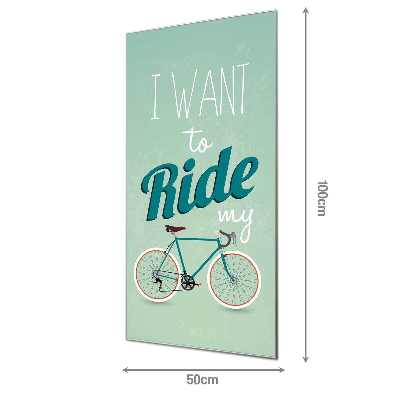 Brillantes Glasbild im Hochformat I want to ride my bike
