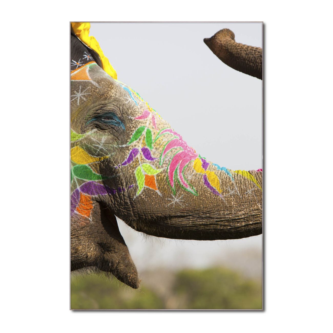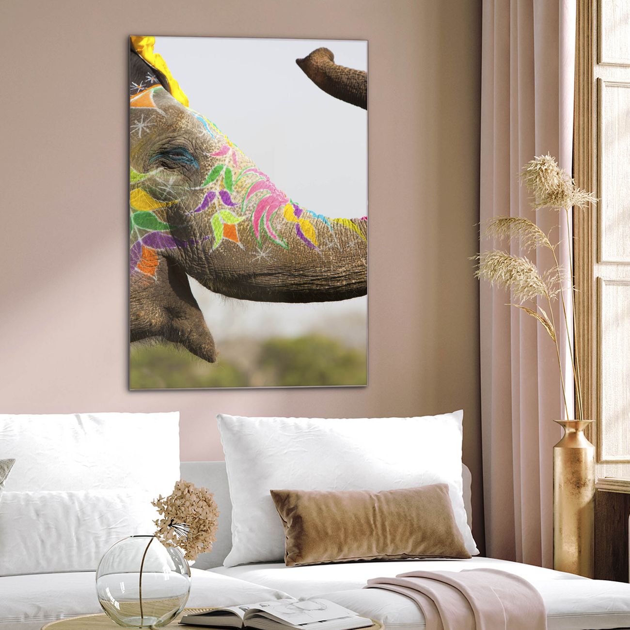 Brillantes Glasbild im Hochformat Indischer Elephant