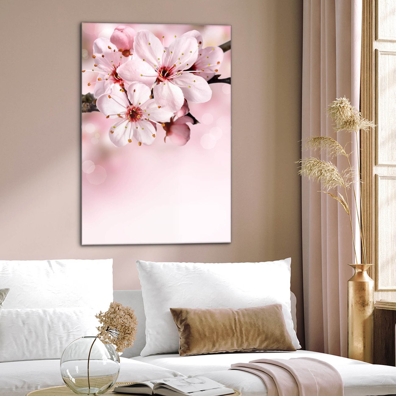 Brillantes Glasbild im Hochformat Japanische Kirsche