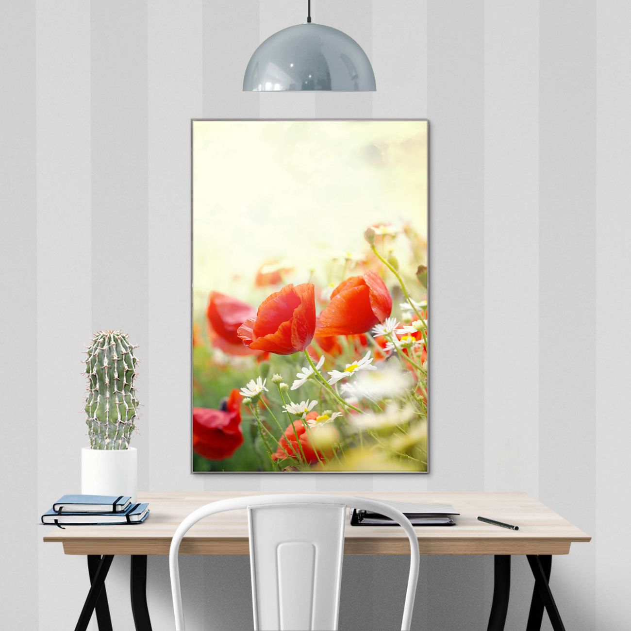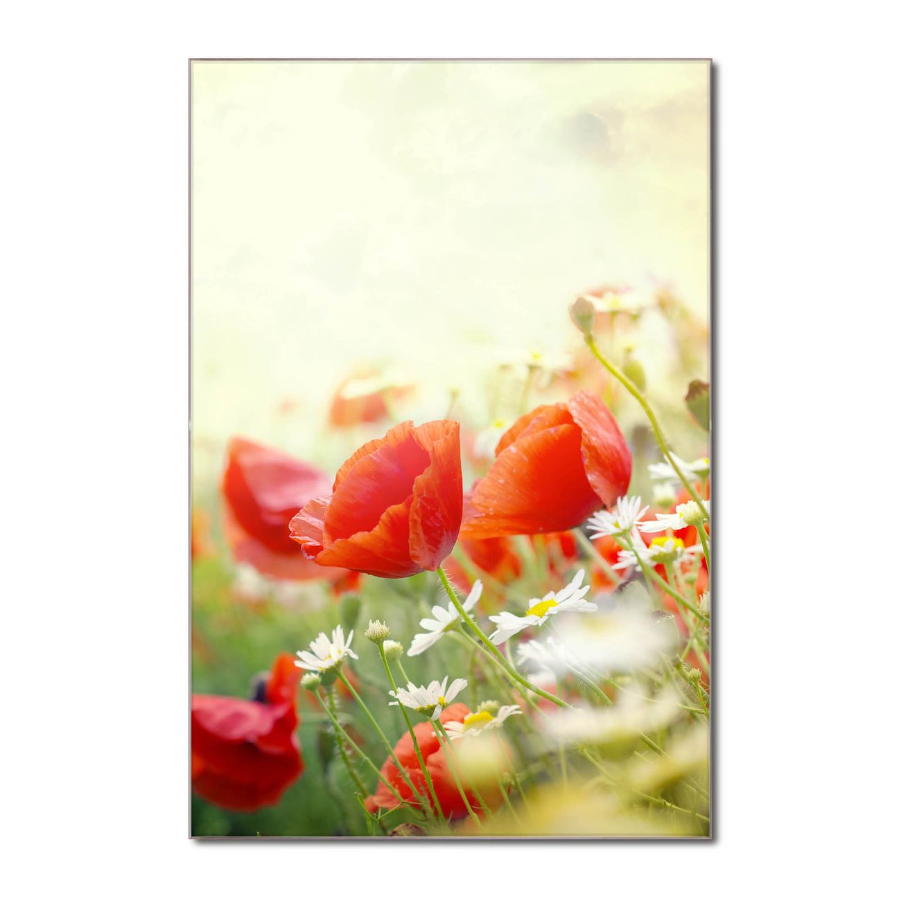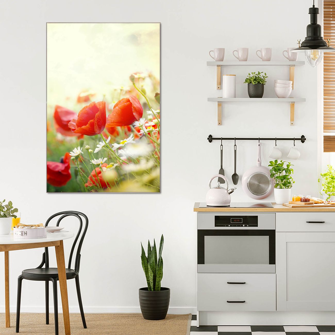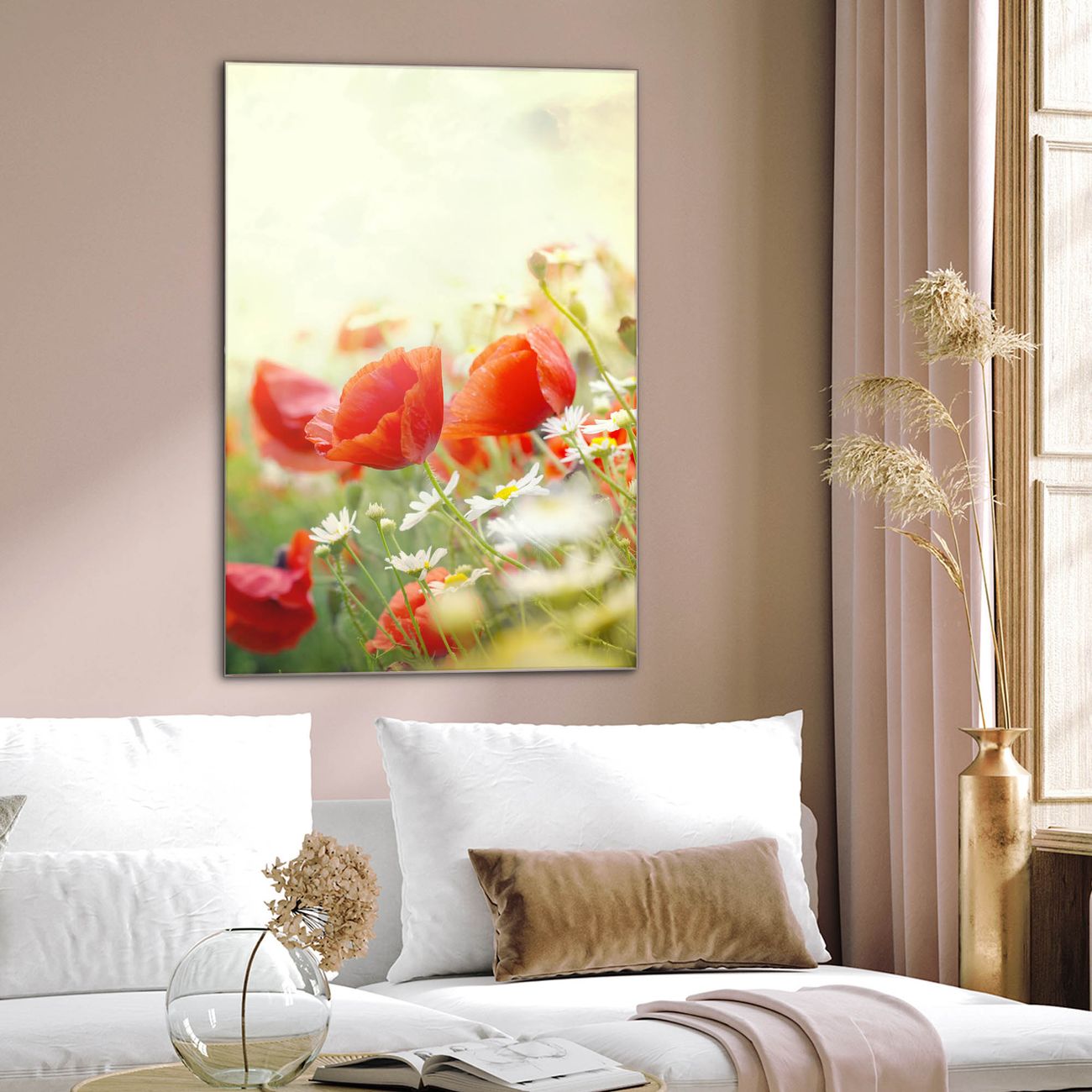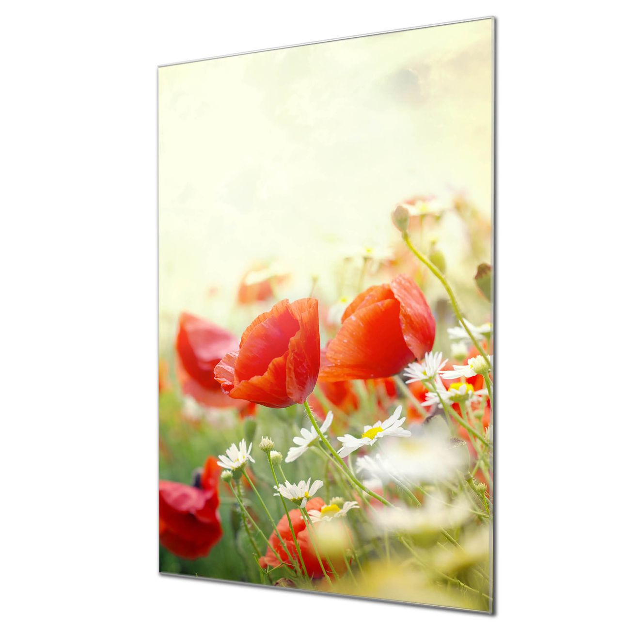 Brillantes Glasbild im Hochformat Kamille Und Mohn
