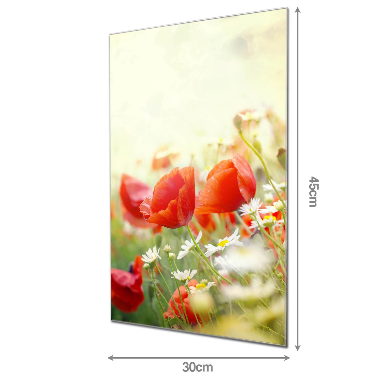 Unsere brillanten Glasbilder im Hochformat von banjado mit Motiv Kamille Und Mohn sind der absolute Hingucker! Unsere Banjado Glasbilder sind sehr begehrt, weil sie top verarbeitet sind und sich ganz leicht montieren lassen. Schon mit wenigen Handgriffen hängen sie an der Wand und strahlen mit höchster brillianz. Durch die Ramenlose Herstellung schwebt das Echtglasbild förmlich an der Wand. Das Motiv erscheint besonders ausdrucksstark und hochwertig und ist hinter dem Echtglas geschützt.