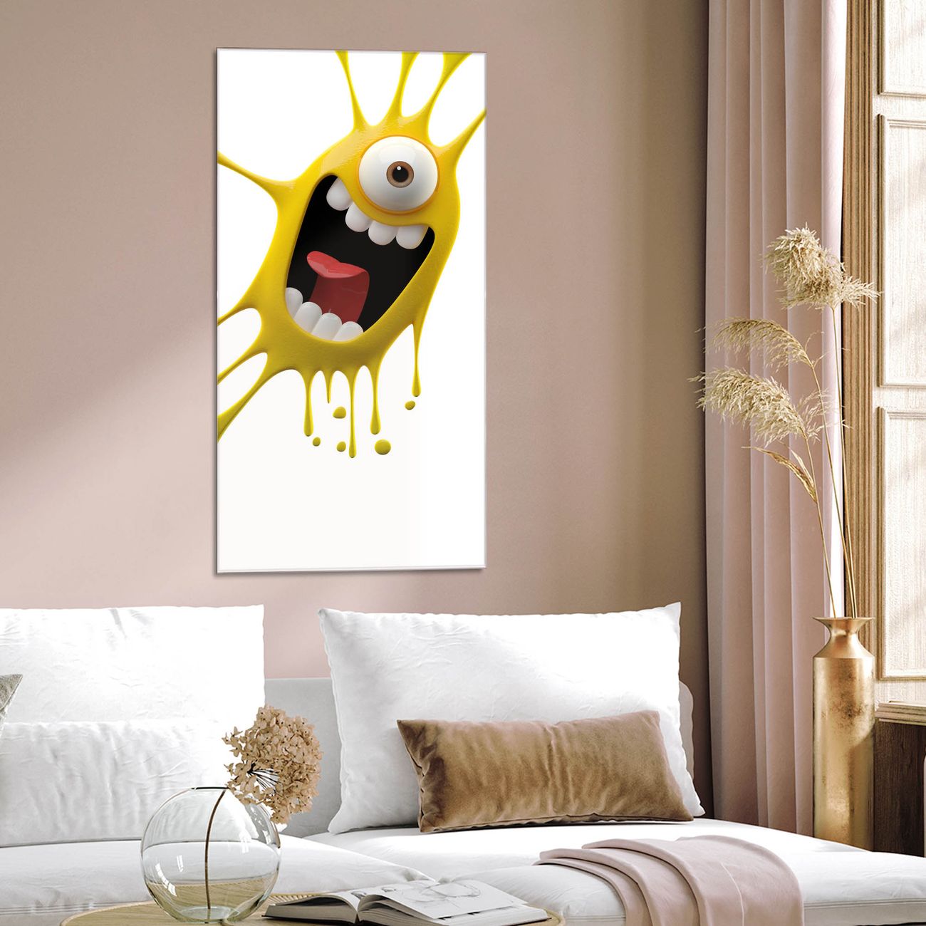 Brillantes Glasbild im Hochformat