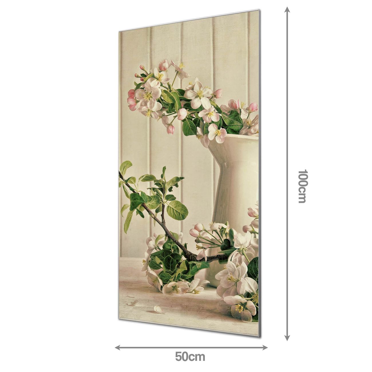 Material  4mm Sicherheitsglas mit Metallrückwand Eigenschaften  farbbrillant, kratzfest, rahmenlos Maße  50x100x0,6cm, 7,50 kg schwer Motiv  Nummer 12074 Kirschzweige