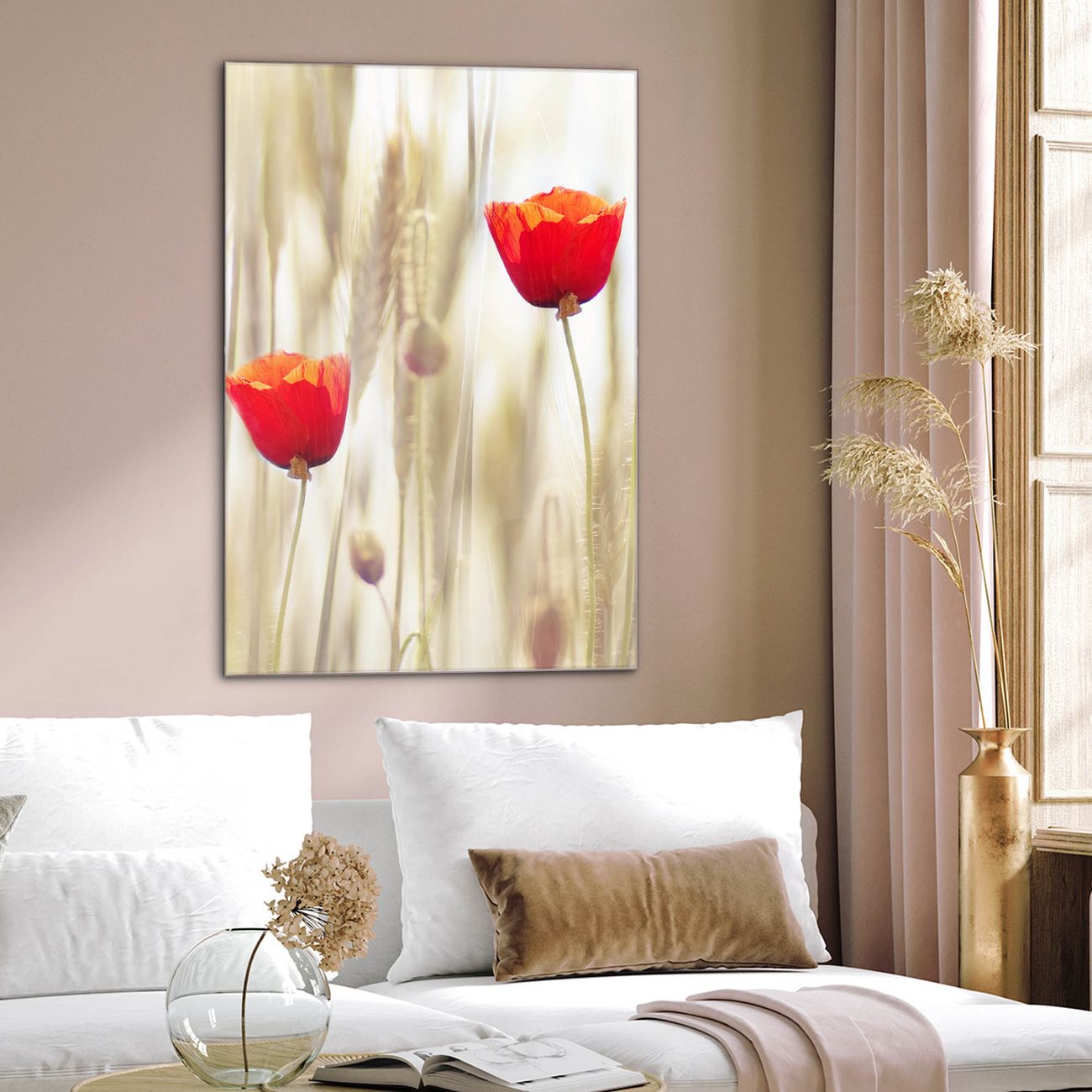 Unsere brillanten Glasbilder im Hochformat von banjado mit Motiv Klatschmohn sind der absolute Hingucker! Unsere Banjado Glasbilder sind sehr begehrt, weil sie top verarbeitet sind und sich ganz leicht montieren lassen. Schon mit wenigen Handgriffen hängen sie an der Wand und strahlen mit höchster brillianz. Durch die Ramenlose Herstellung schwebt das Echtglasbild förmlich an der Wand. Das Motiv erscheint besonders ausdrucksstark und hochwertig und ist hinter dem Echtglas geschützt.