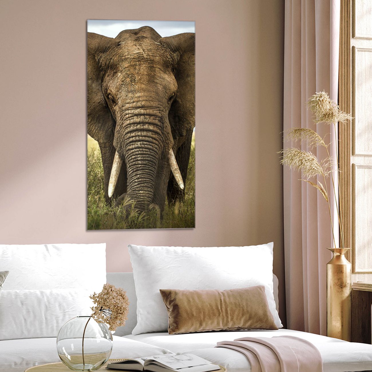Brillantes Glasbild im Hochformat
