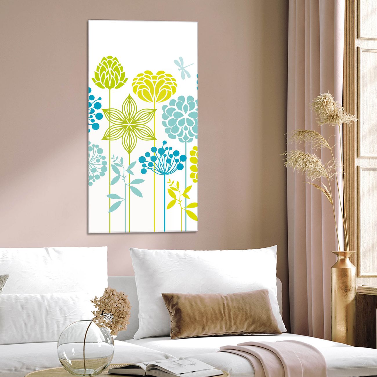 Brillantes Glasbild im Hochformat Kräuterwiese