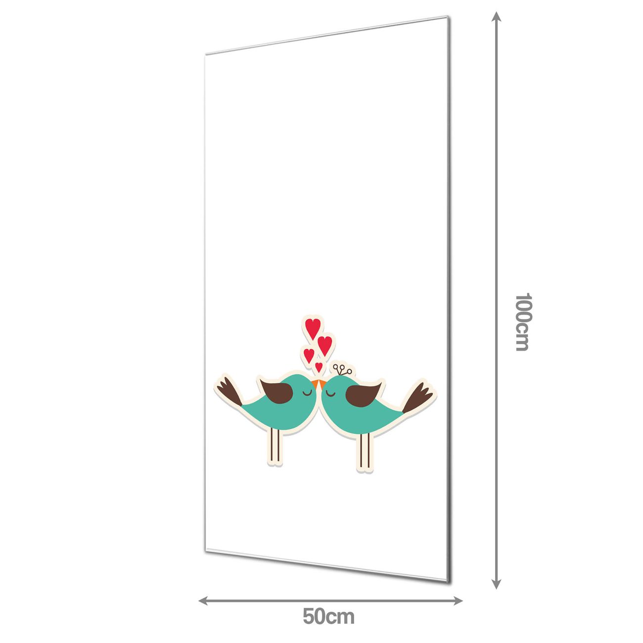Material  4mm Sicherheitsglas mit Metallrückwand Eigenschaften  farbbrillant, kratzfest, rahmenlos Maße  50x100x0,6cm, 7,50 kg schwer Motiv  Nummer 10895 Küsschen