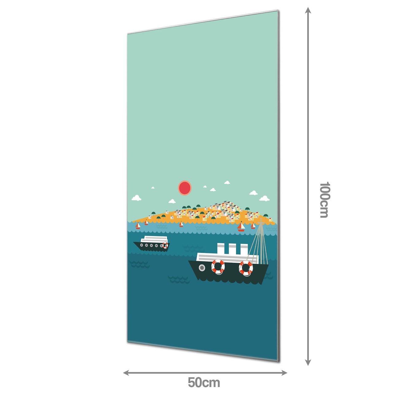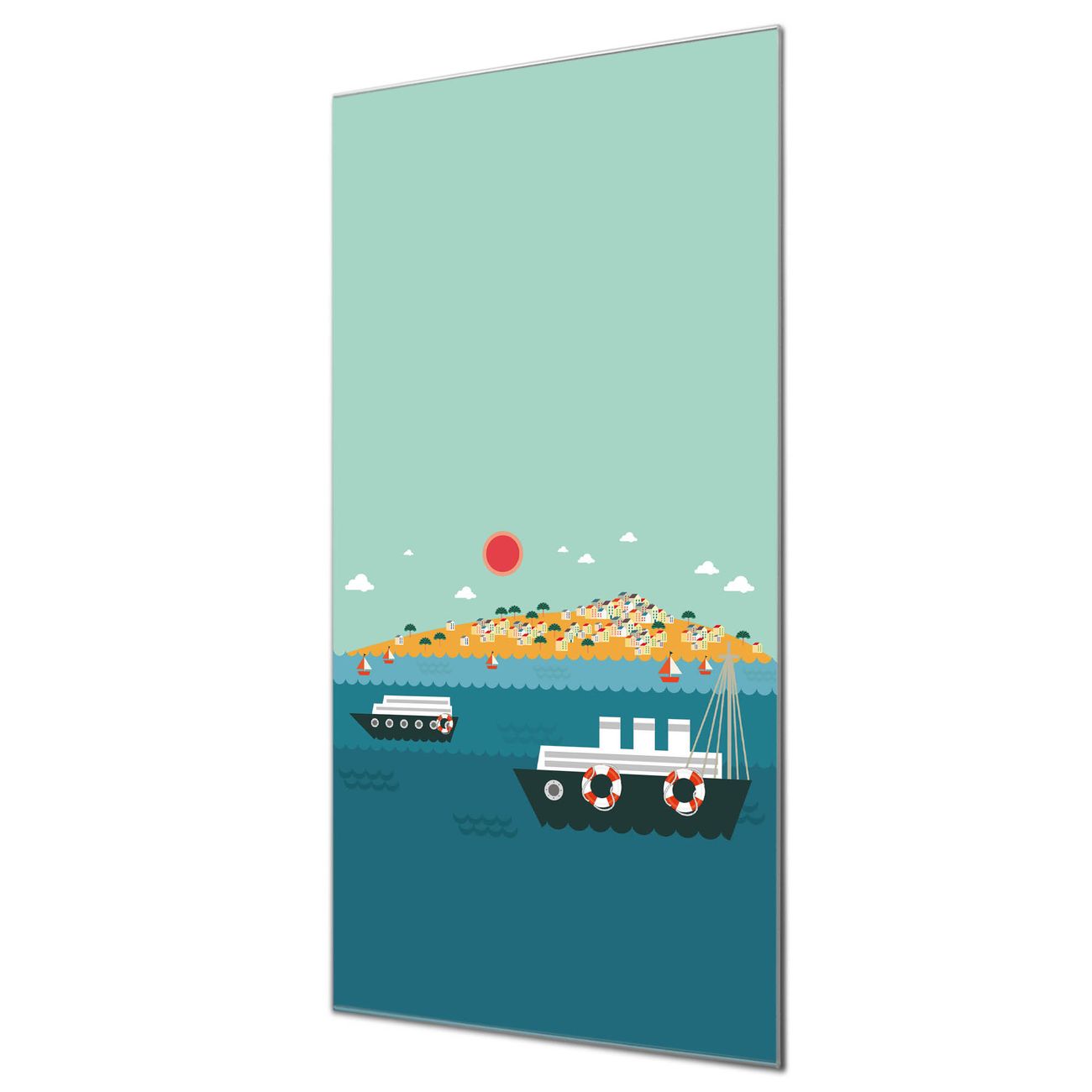 Material  4mm Sicherheitsglas mit Metallrückwand Eigenschaften  farbbrillant, kratzfest, rahmenlos Maße  50x100x0,6cm, 7,50 kg schwer Motiv  Nummer 11921 Land in Sicht