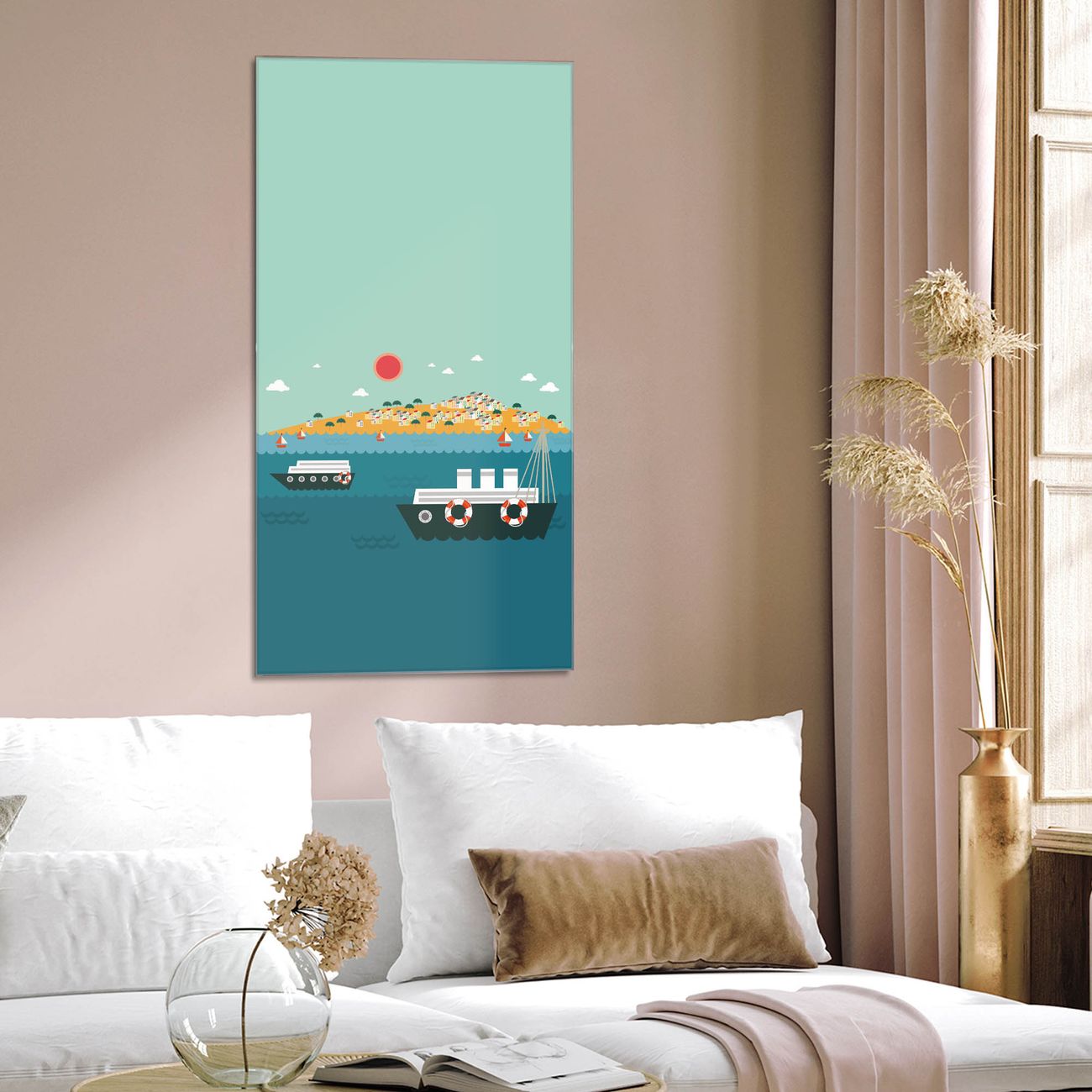 Unsere brillanten Glasbilder im Hochformat von banjado mit Motiv Land in Sicht sind der absolute Hingucker! Unsere Banjado Glasbilder sind sehr begehrt, weil sie top verarbeitet sind und sich ganz leicht montieren lassen. Schon mit wenigen Handgriffen hängen sie an der Wand und strahlen mit höchster brillianz. Durch die Ramenlose Herstellung schwebt das Echtglasbild förmlich an der Wand. Das Motiv erscheint besonders ausdrucksstark, hochwertig und ist hinter dem Echtglas geschützt.