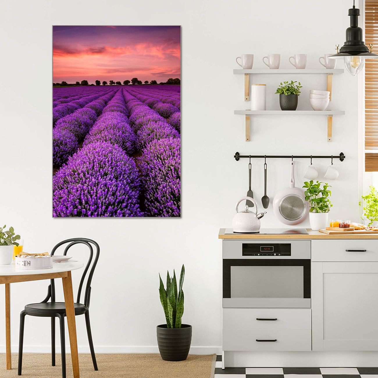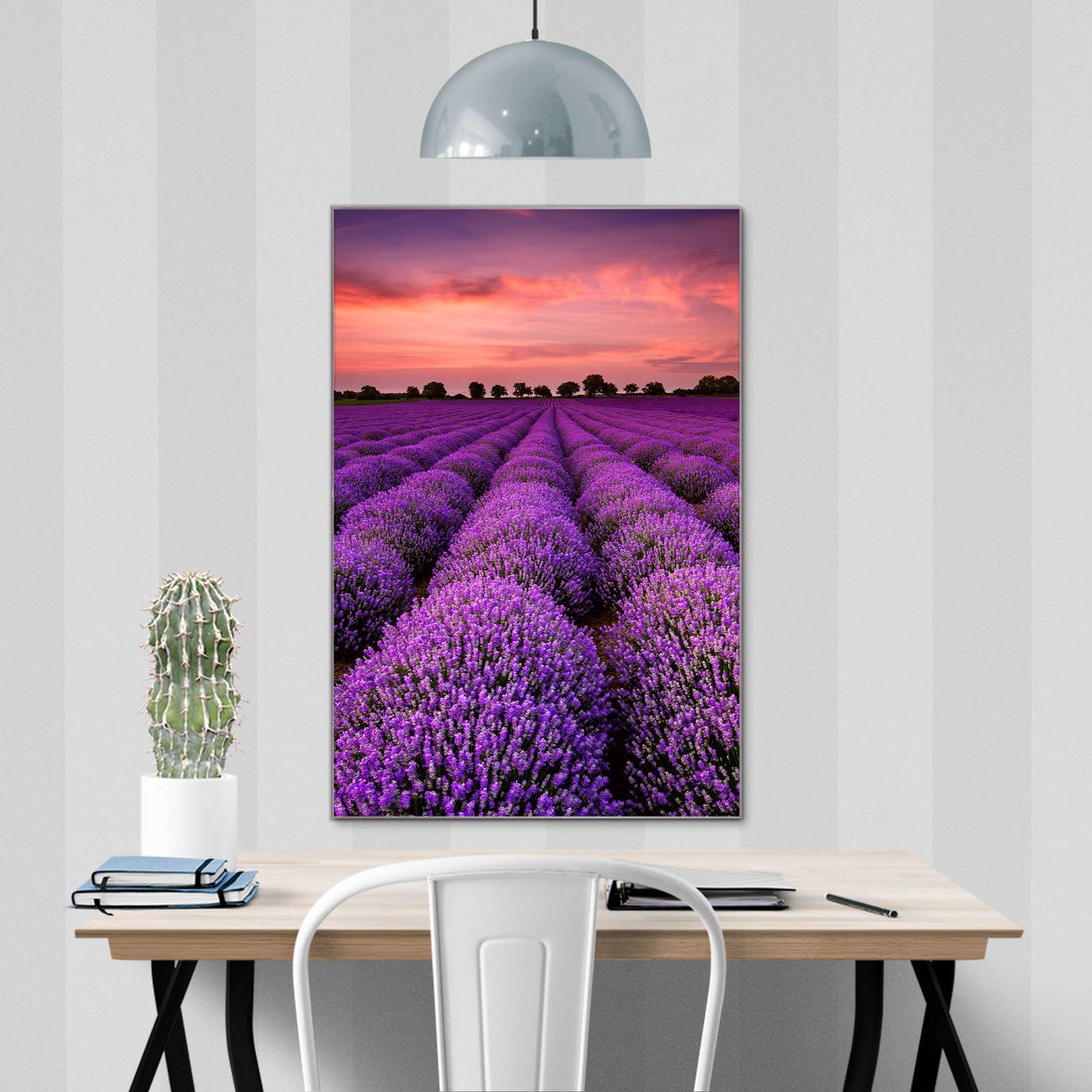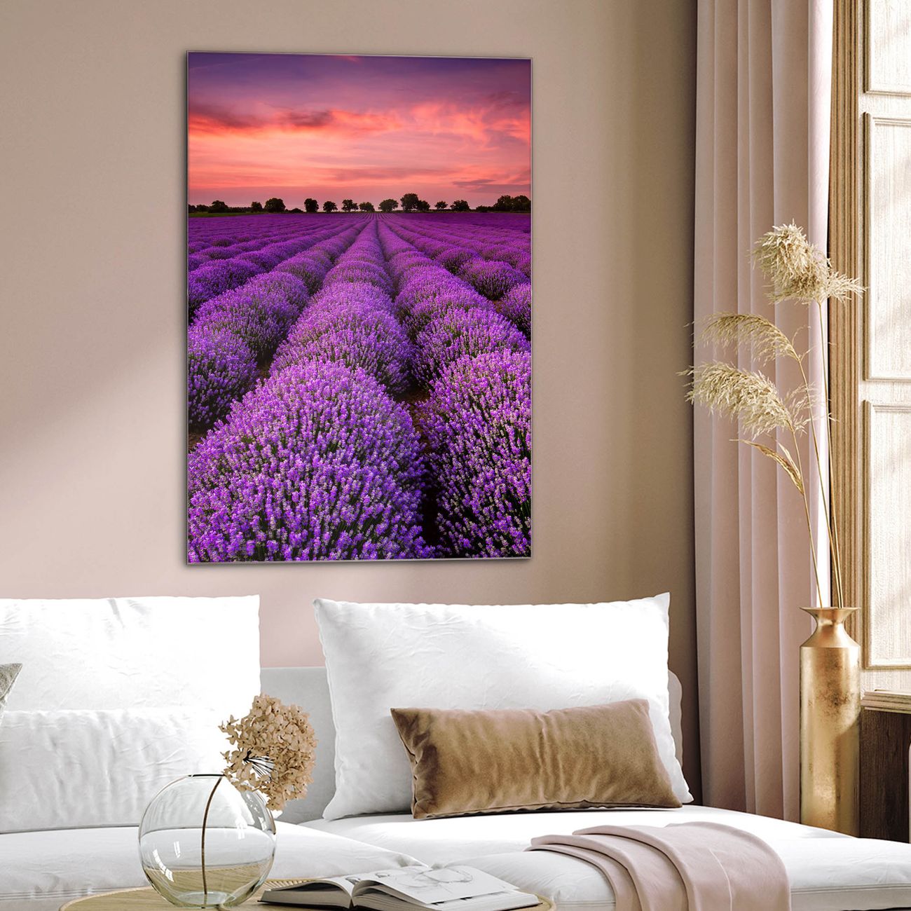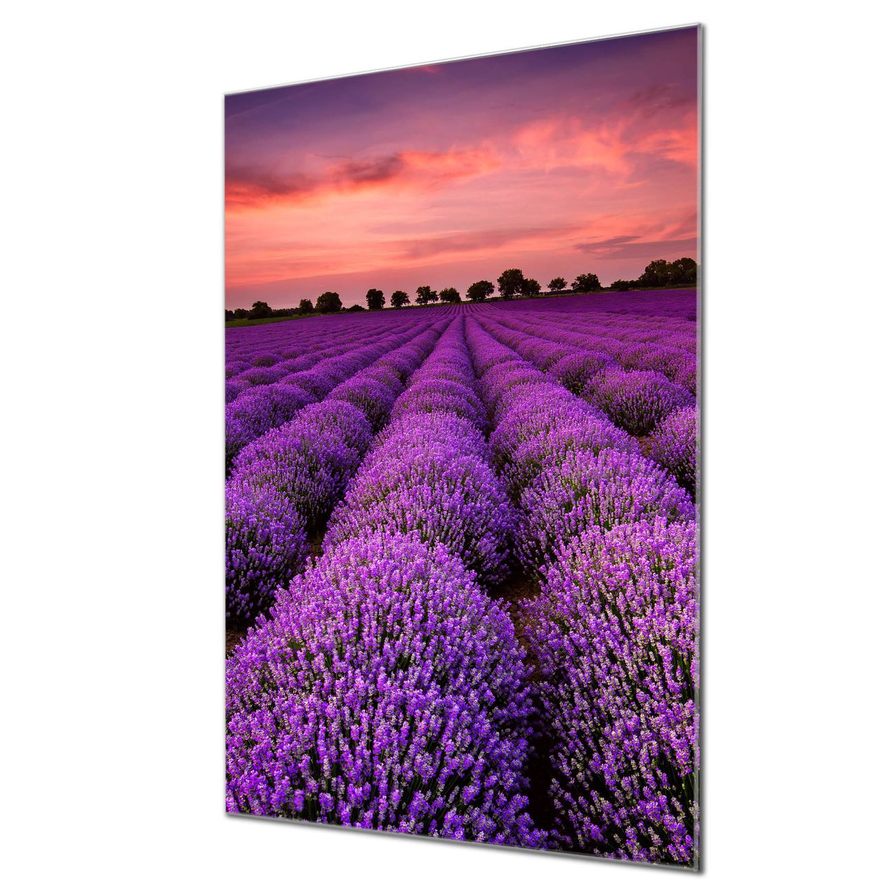 Brillantes Glasbild im Hochformat Lavendelfeld