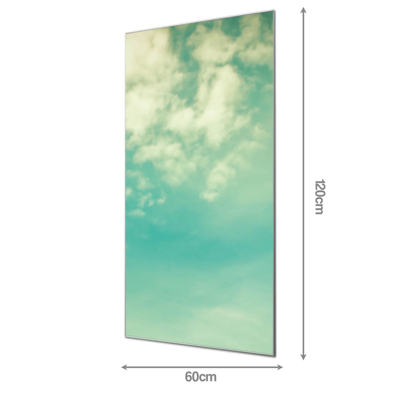 Material  4mm Sicherheitsglas mit Metallrückwand Eigenschaften  farbbrillant, kratzfest, rahmenlos Maße  60x120x0,6cm, 10,80 kg schwer Motiv  Nummer 11515 Leicht Bewölkt