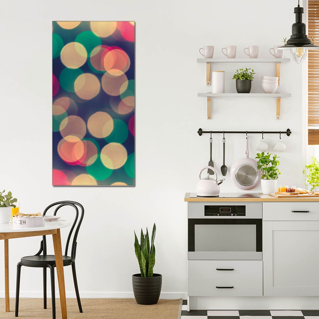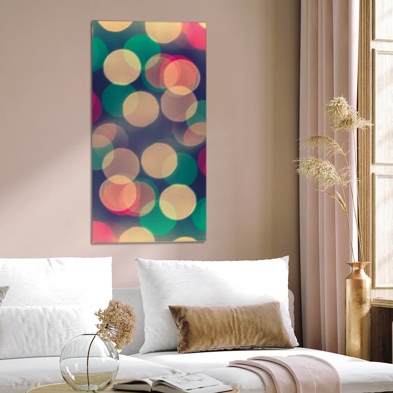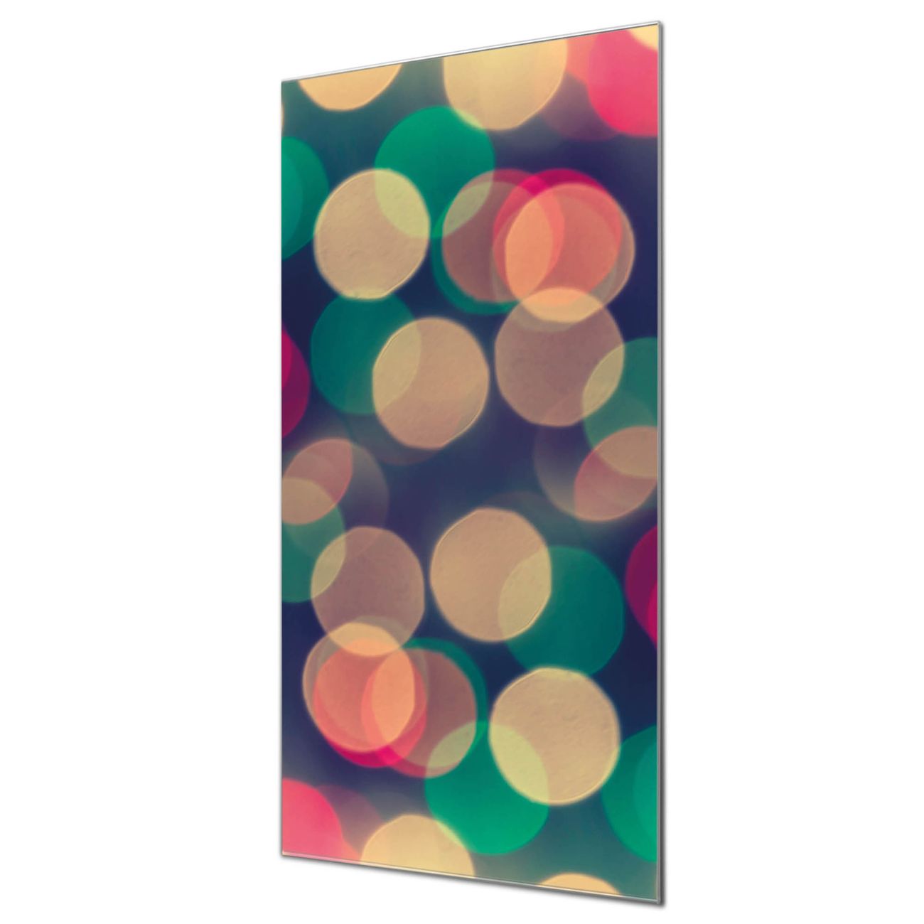 Brillantes Glasbild im Hochformat Lichtpunkte Weiß Grün Rot