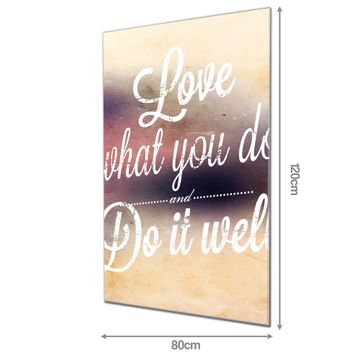 Unsere brillanten Glasbilder im Hochformat von banjado mit Motiv Love What You Do sind der absolute Hingucker! Unsere Banjado Glasbilder sind sehr begehrt, weil sie top verarbeitet sind und sich ganz leicht montieren lassen. Schon mit wenigen Handgriffen hängen sie an der Wand und strahlen mit höchster brillianz. Durch die Ramenlose Herstellung schwebt das Echtglasbild förmlich an der Wand. Das Motiv erscheint besonders ausdrucksstark und hochwertig und ist hinter dem Echtglas geschützt.