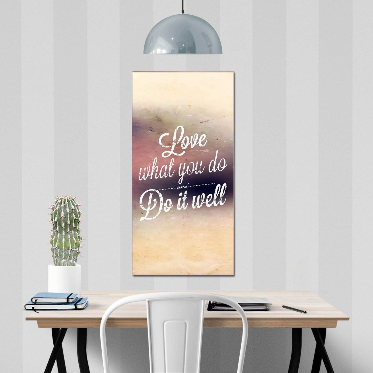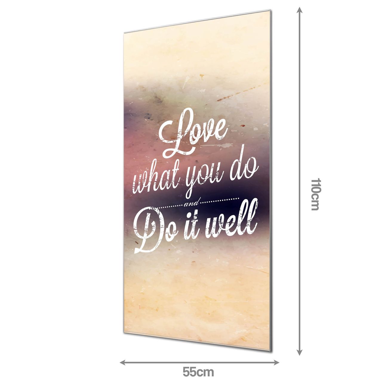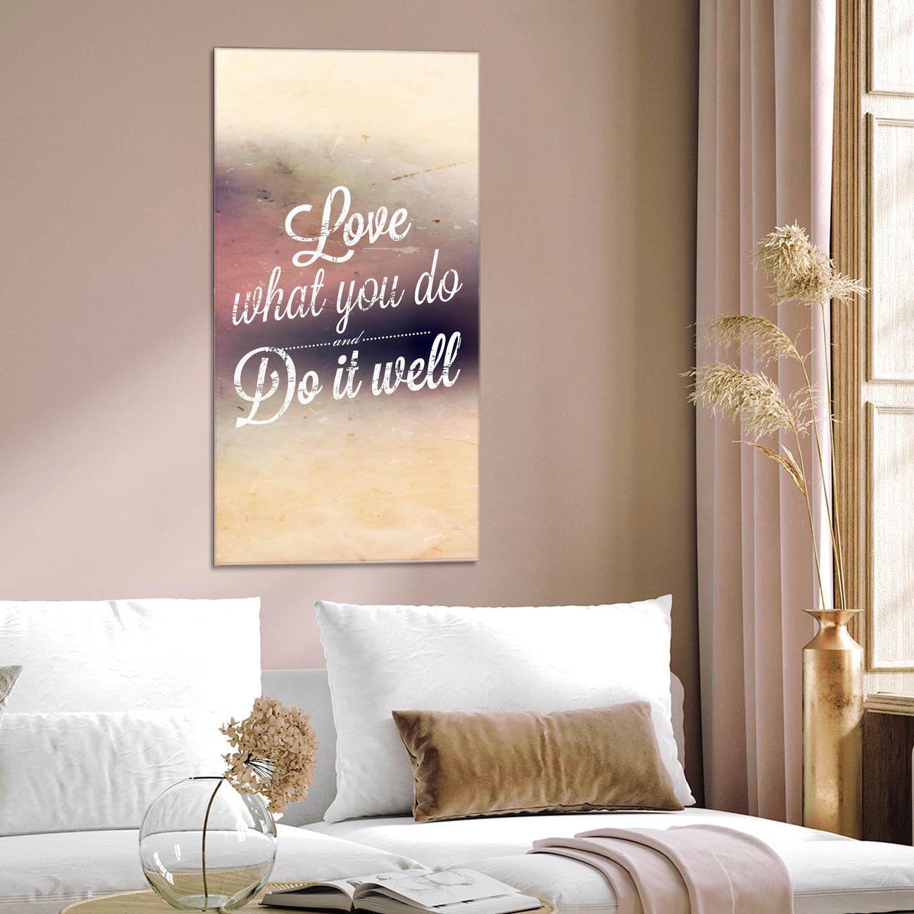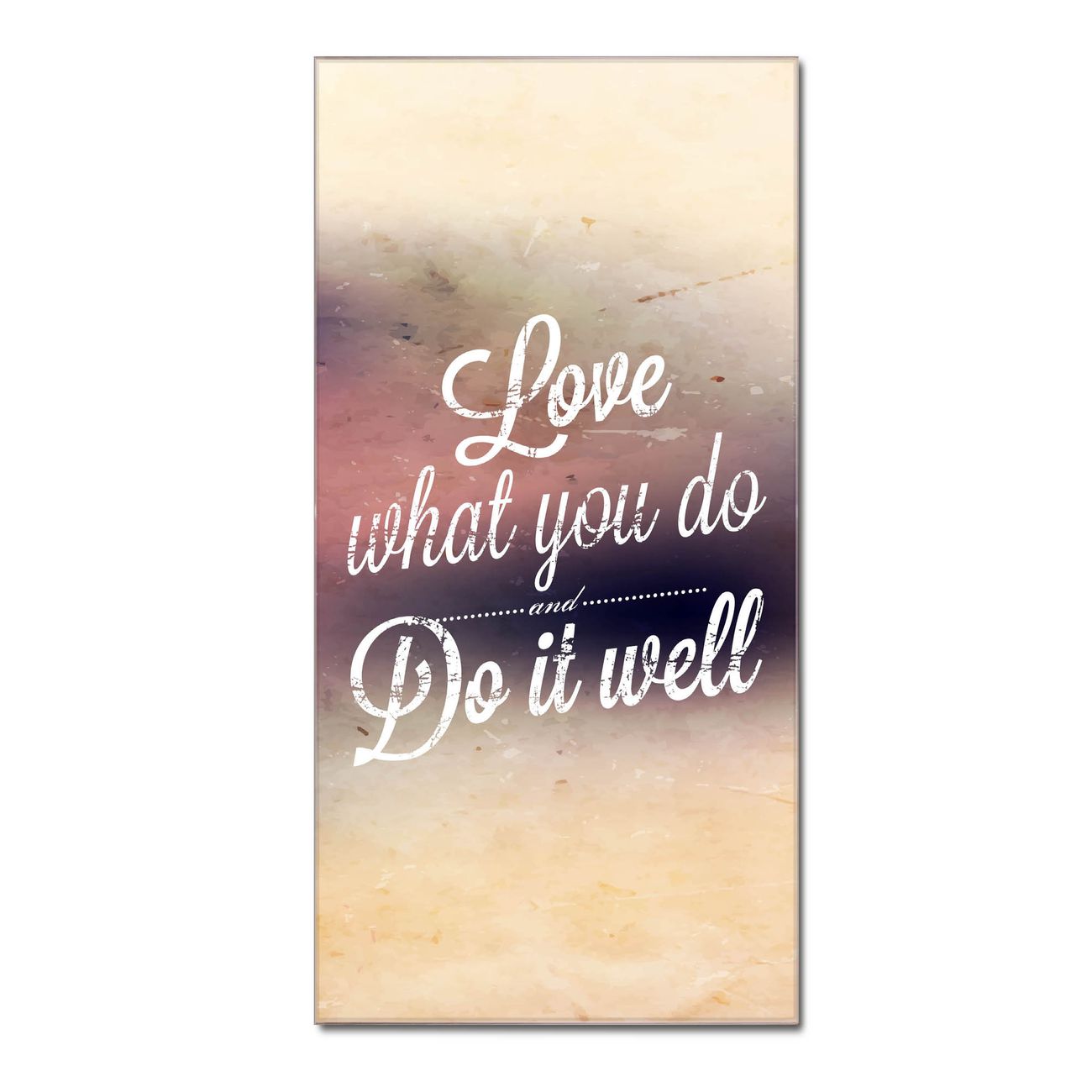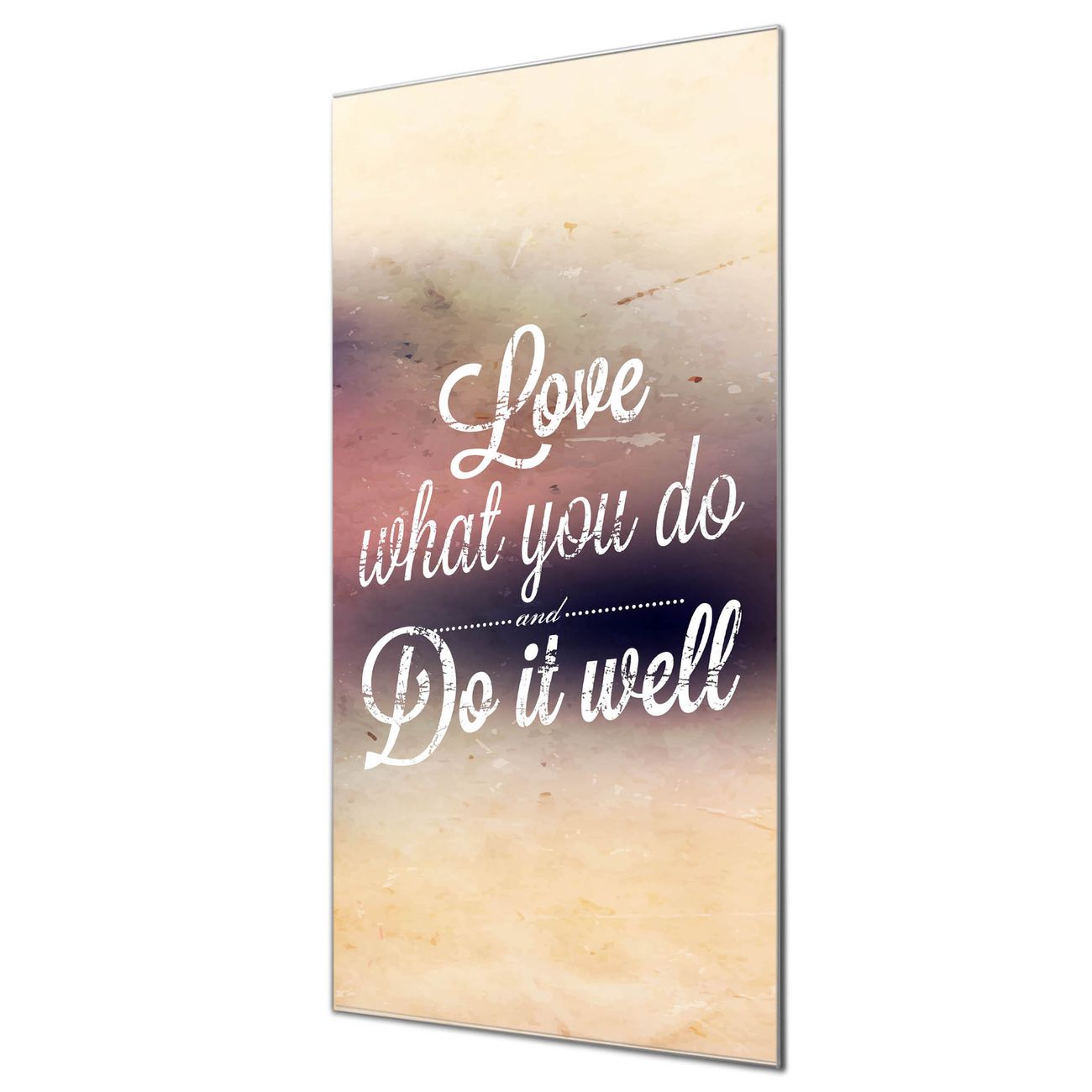 Unsere brillanten Glasbilder im Hochformat von banjado mit Motiv Love What You Do sind der absolute Hingucker! Unsere Banjado Glasbilder sind sehr begehrt, weil sie top verarbeitet sind und sich ganz leicht montieren lassen. Schon mit wenigen Handgriffen hängen sie an der Wand und strahlen mit höchster brillianz. Durch die Ramenlose Herstellung schwebt das Echtglasbild förmlich an der Wand. Das Motiv erscheint besonders ausdrucksstark und hochwertig und ist hinter dem Echtglas geschützt.