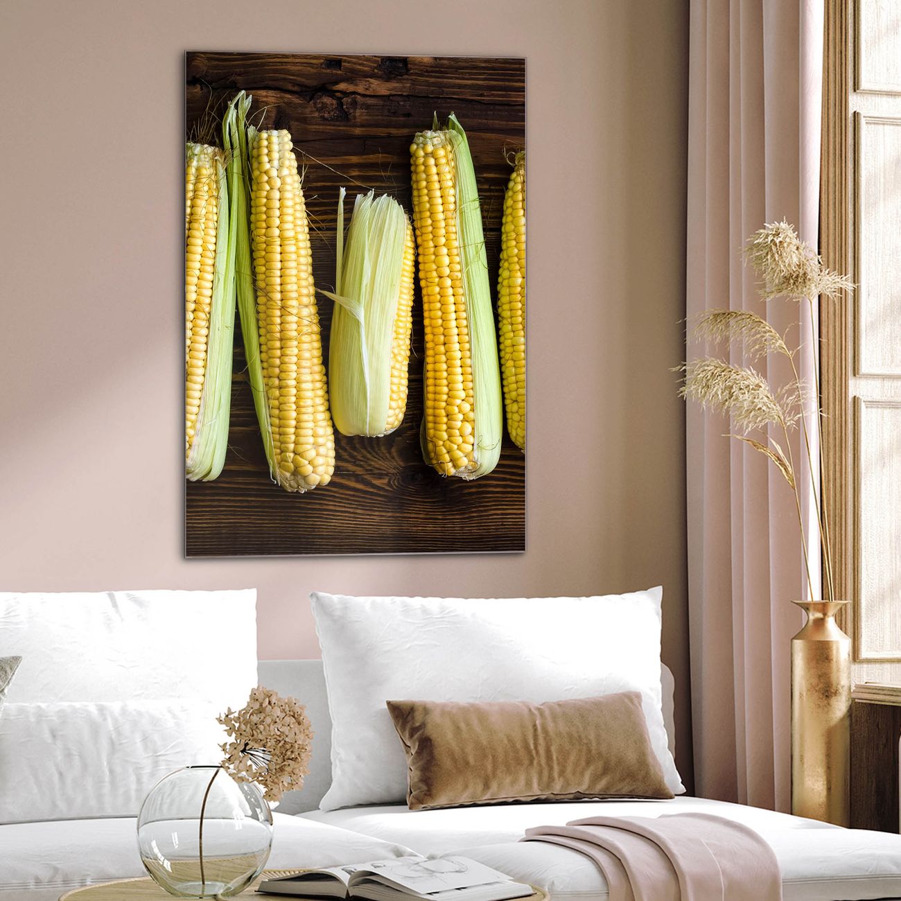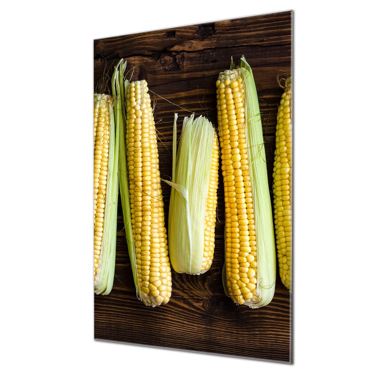Brillantes Glasbild im Hochformat Maiskolben