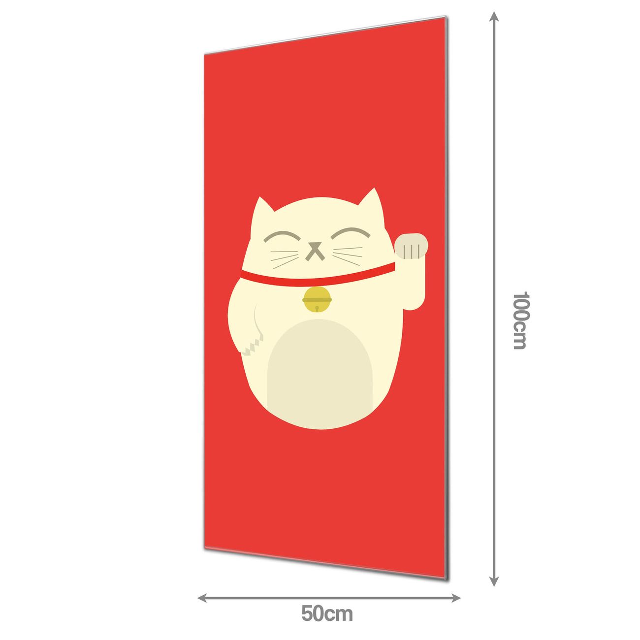 Material  4mm Sicherheitsglas mit Metallrückwand Eigenschaften  farbbrillant, kratzfest, rahmenlos Maße  50x100x0,6cm, 7,50 kg schwer Motiv  Nummer 11799 Manekineko