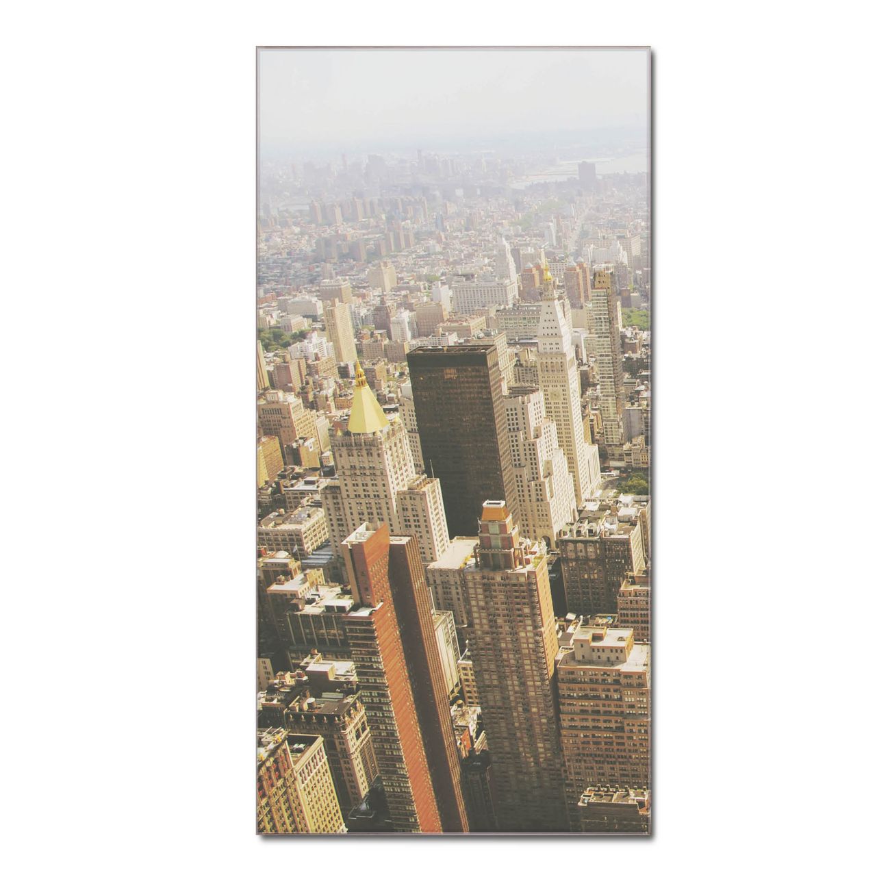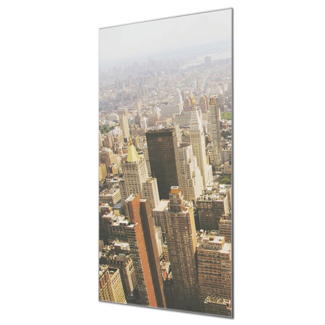 Material  4mm Sicherheitsglas mit Metallrückwand Eigenschaften  farbbrillant, kratzfest, rahmenlos Maße  55x110x0,6cm, 9,08 kg schwer Motiv  Nummer 11769 Manhattan 1