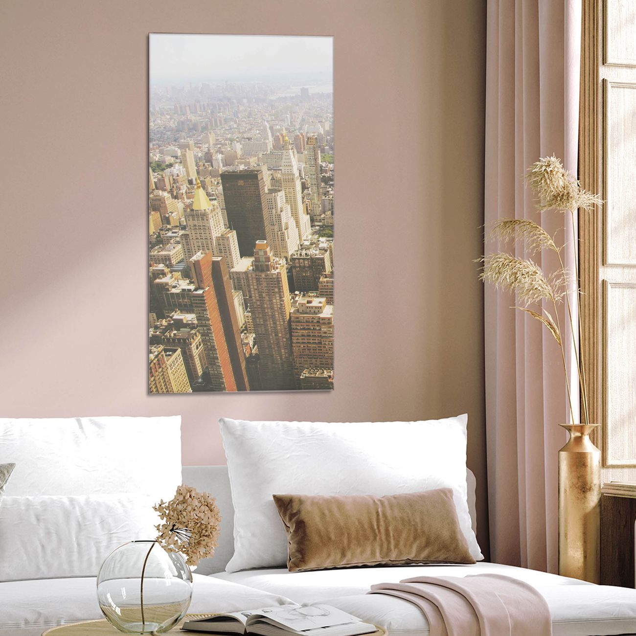 Unsere brillanten Glasbilder im Hochformat von banjado mit Motiv Manhattan 1 sind der absolute Hingucker! Unsere Banjado Glasbilder sind sehr begehrt, weil sie top verarbeitet sind und sich ganz leicht montieren lassen. Schon mit wenigen Handgriffen hängen sie an der Wand und strahlen mit höchster brillianz. Durch die Ramenlose Herstellung schwebt das Echtglasbild förmlich an der Wand. Das Motiv erscheint besonders ausdrucksstark, hochwertig und ist hinter dem Echtglas geschützt.