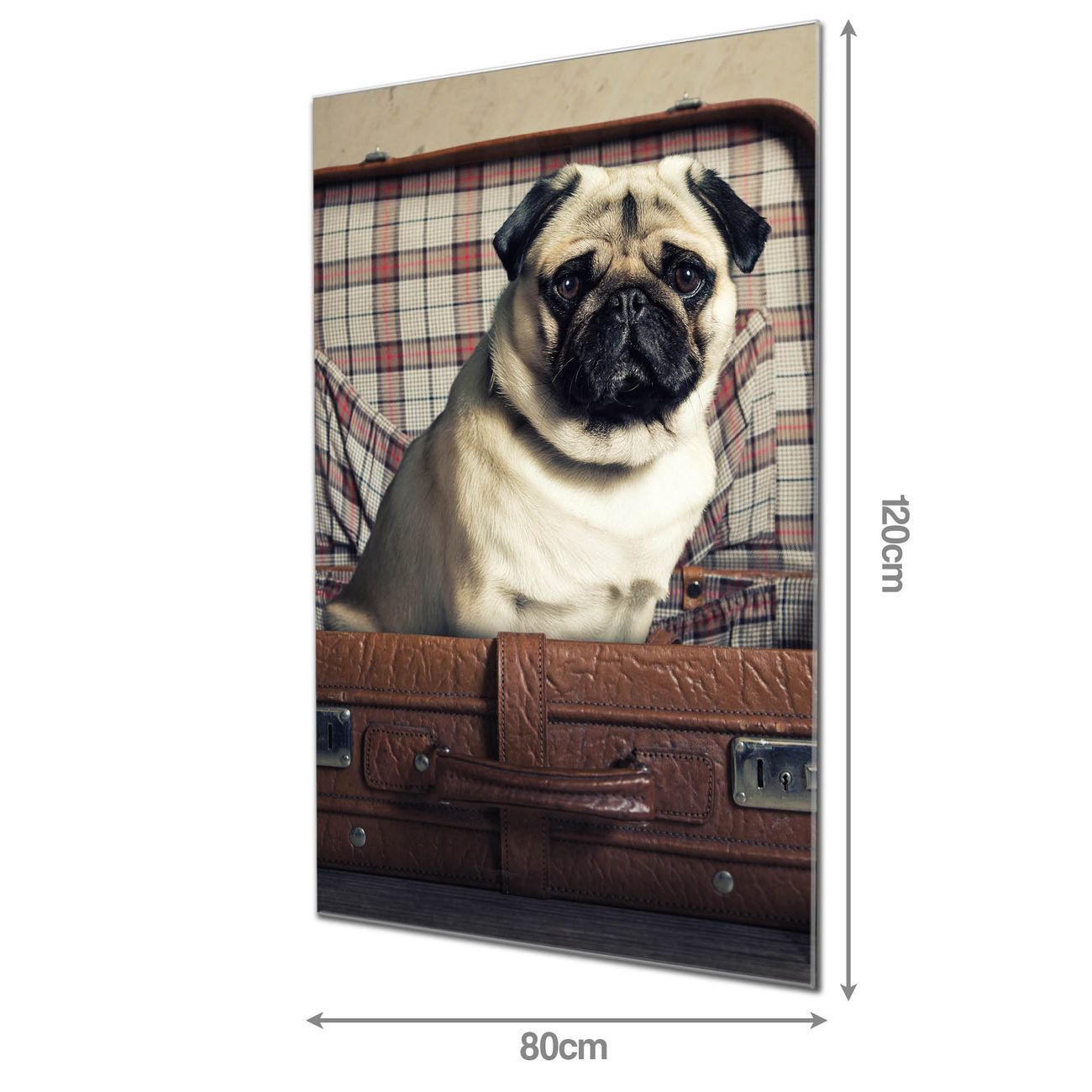 Unsere brillanten Glasbilder im Hochformat von banjado mit Motiv Mops im Koffer sind der absolute Hingucker! Unsere Banjado Glasbilder sind sehr begehrt, weil sie top verarbeitet sind und sich ganz leicht montieren lassen. Schon mit wenigen Handgriffen hängen sie an der Wand und strahlen mit höchster brillianz. Durch die Ramenlose Herstellung schwebt das Echtglasbild förmlich an der Wand. Das Motiv erscheint besonders ausdrucksstark und hochwertig und ist hinter dem Echtglas geschützt.
