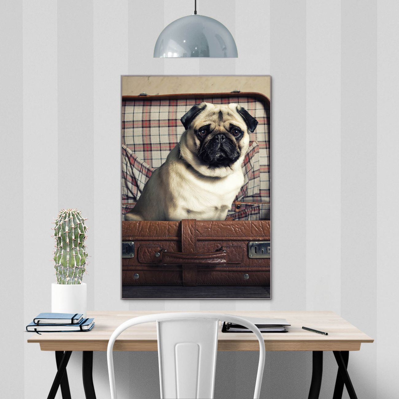Unsere brillanten Glasbilder im Hochformat von banjado mit Motiv Mops im Koffer sind der absolute Hingucker! Unsere Banjado Glasbilder sind sehr begehrt, weil sie top verarbeitet sind und sich ganz leicht montieren lassen. Schon mit wenigen Handgriffen hängen sie an der Wand und strahlen mit höchster brillianz. Durch die Ramenlose Herstellung schwebt das Echtglasbild förmlich an der Wand. Das Motiv erscheint besonders ausdrucksstark und hochwertig und ist hinter dem Echtglas geschützt.