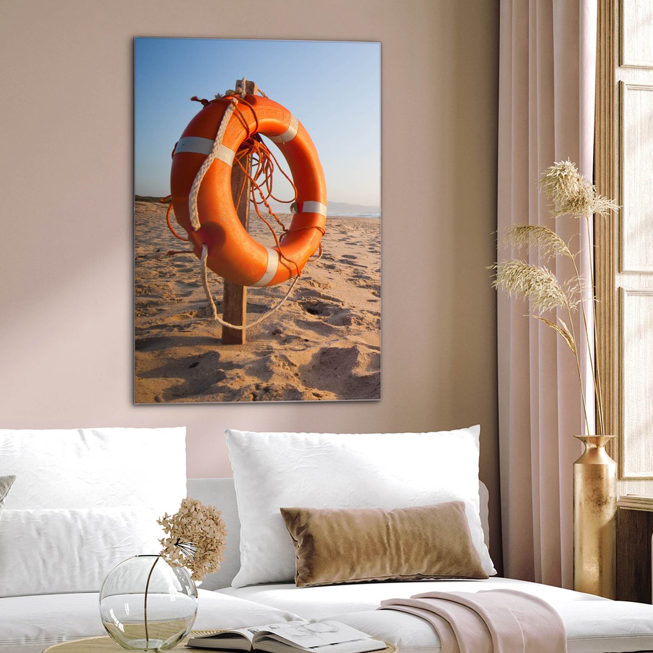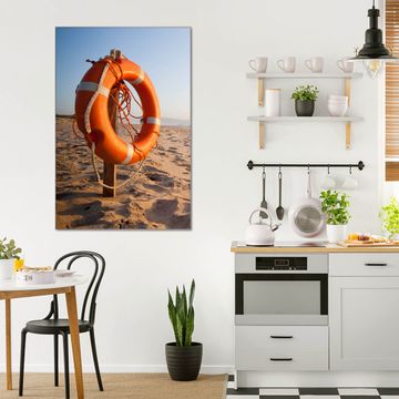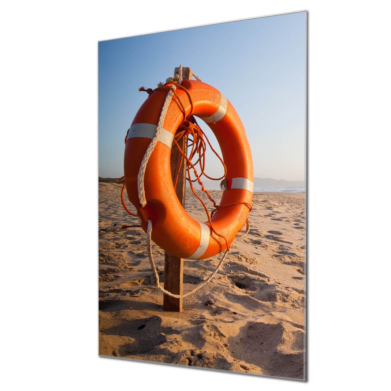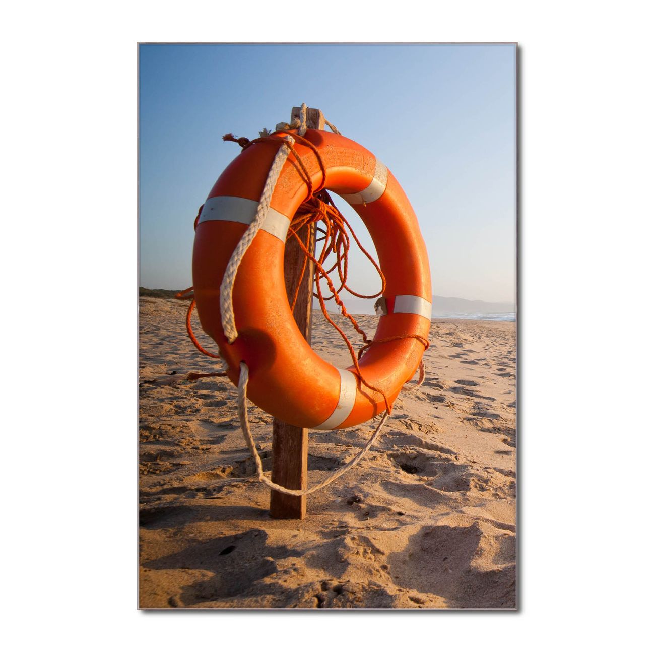 Brillantes Glasbild im Hochformat Morgens Am Strand