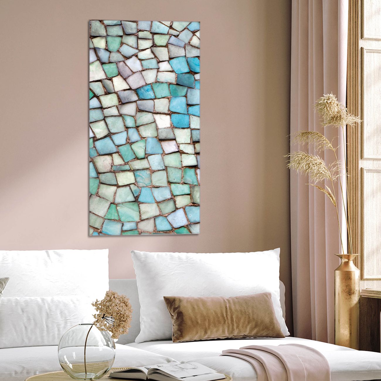 Brillantes Glasbild im Hochformat Mosaik Blau