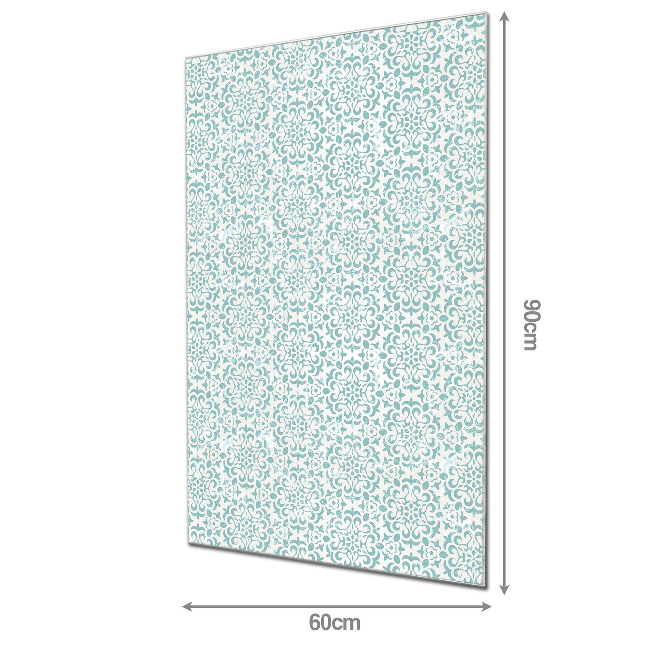 Material  4mm Sicherheitsglas mit Metallrückwand Eigenschaften  farbbrillant, kratzfest, rahmenlos Maße  60x90x0,6cm, 8,10 kg schwer Motiv  Nummer 10947 Muster Getupft Blau