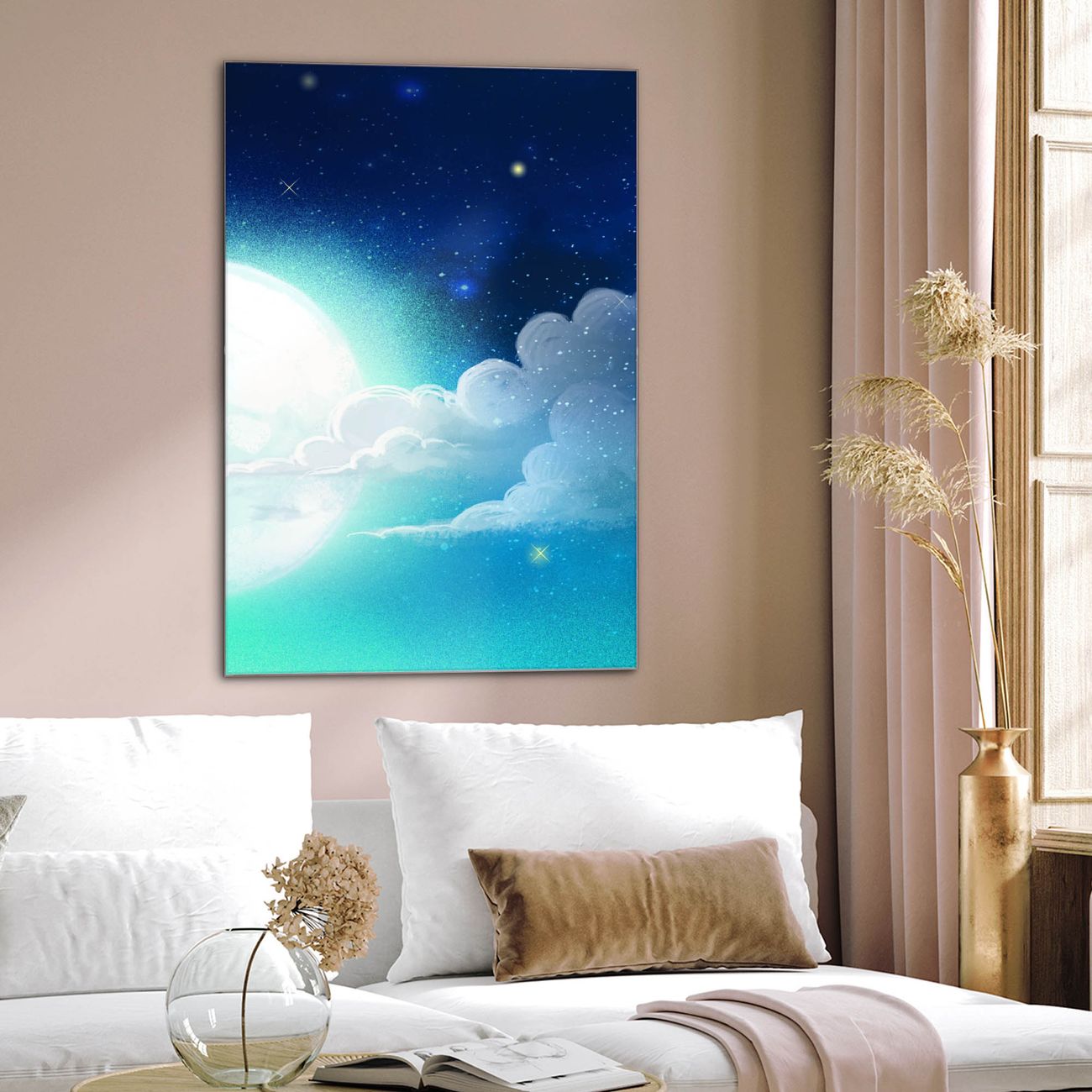 Brillantes Glasbild im Hochformat Nachthimmel 1