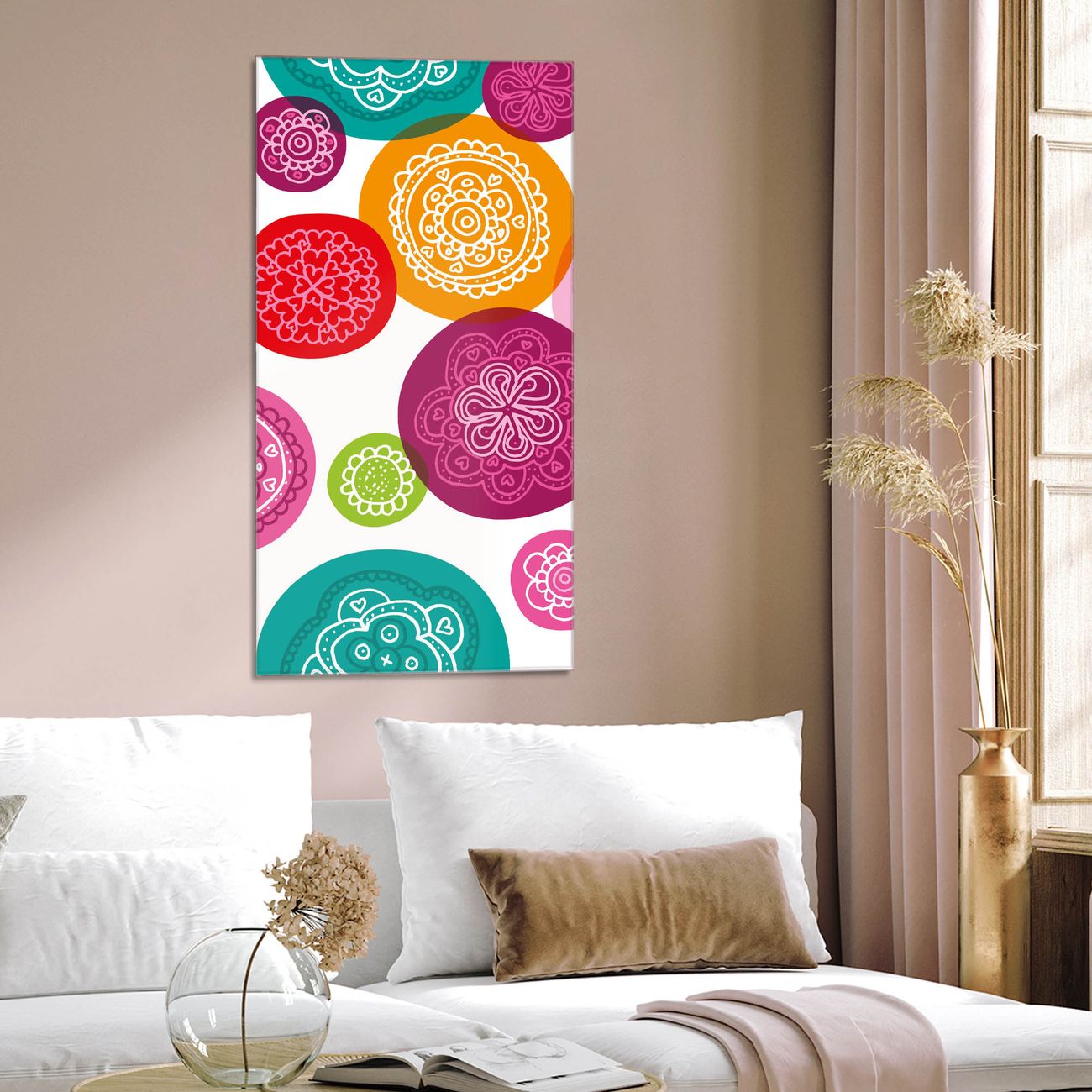 Brillantes Glasbild im Hochformat Naive Blüten