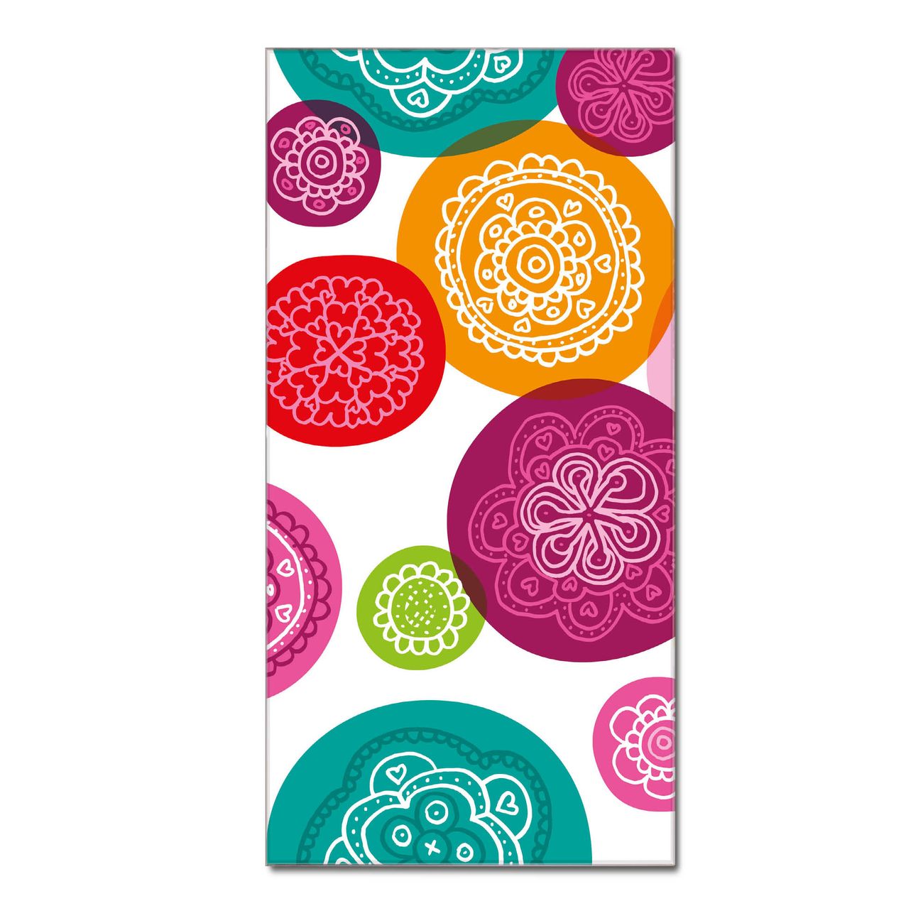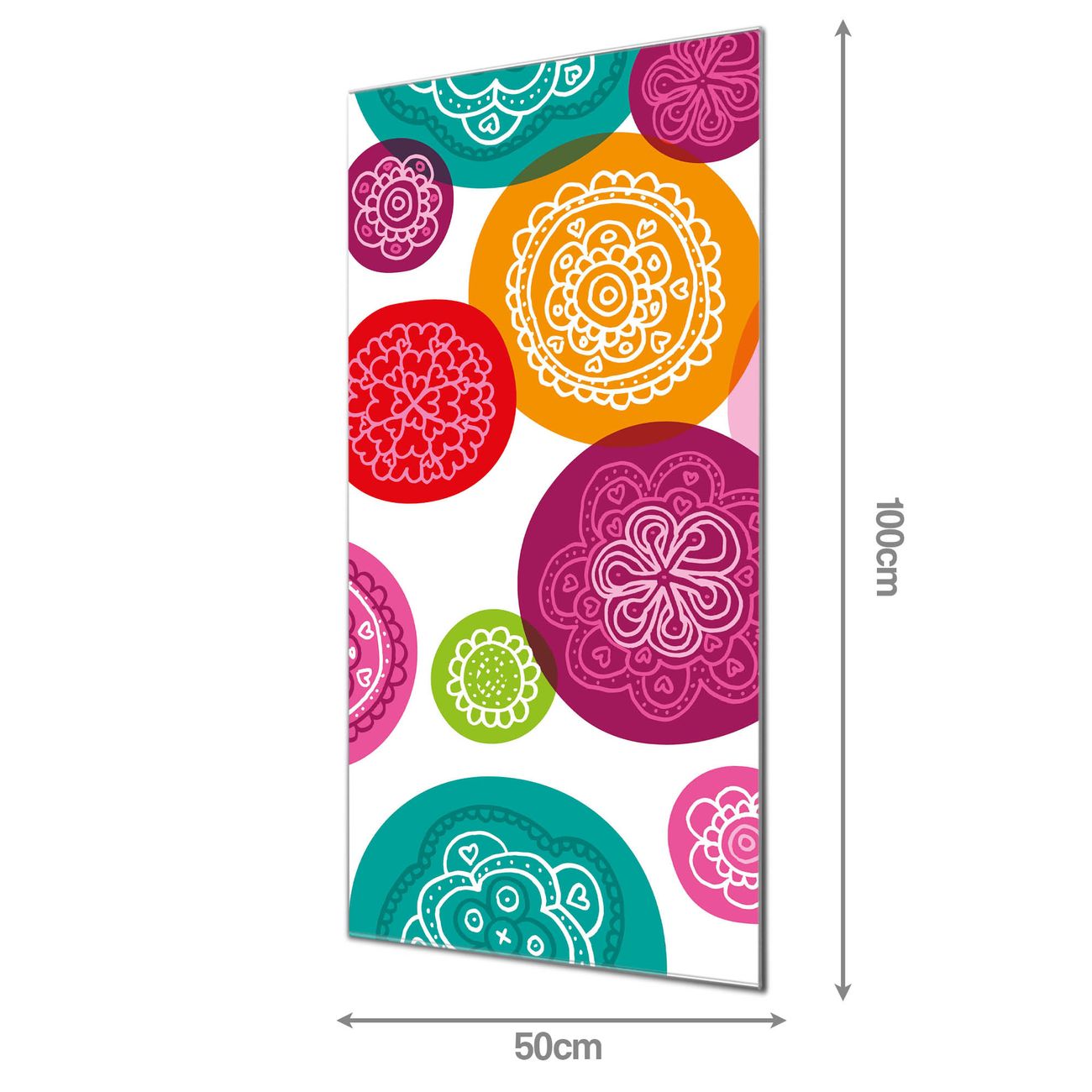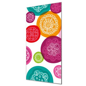 Material  4mm Sicherheitsglas mit Metallrückwand Eigenschaften  farbbrillant, kratzfest, rahmenlos Maße  50x100x0,6cm, 7,50 kg schwer Motiv  Nummer 11419 Naive Blüten