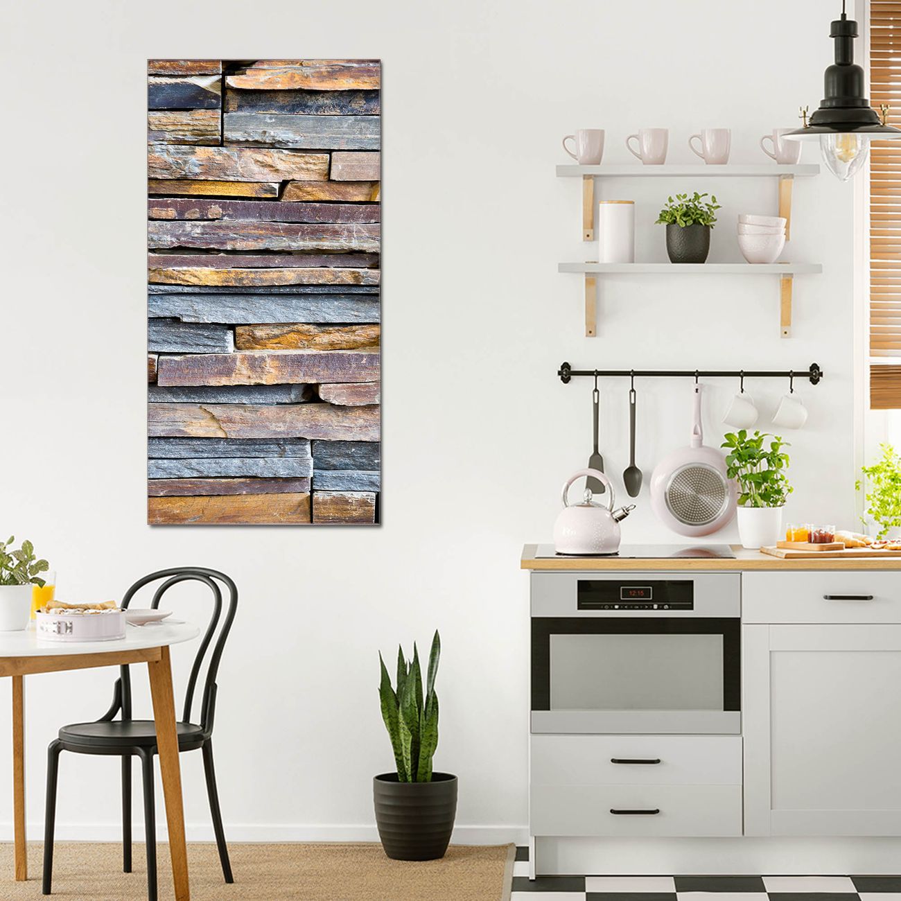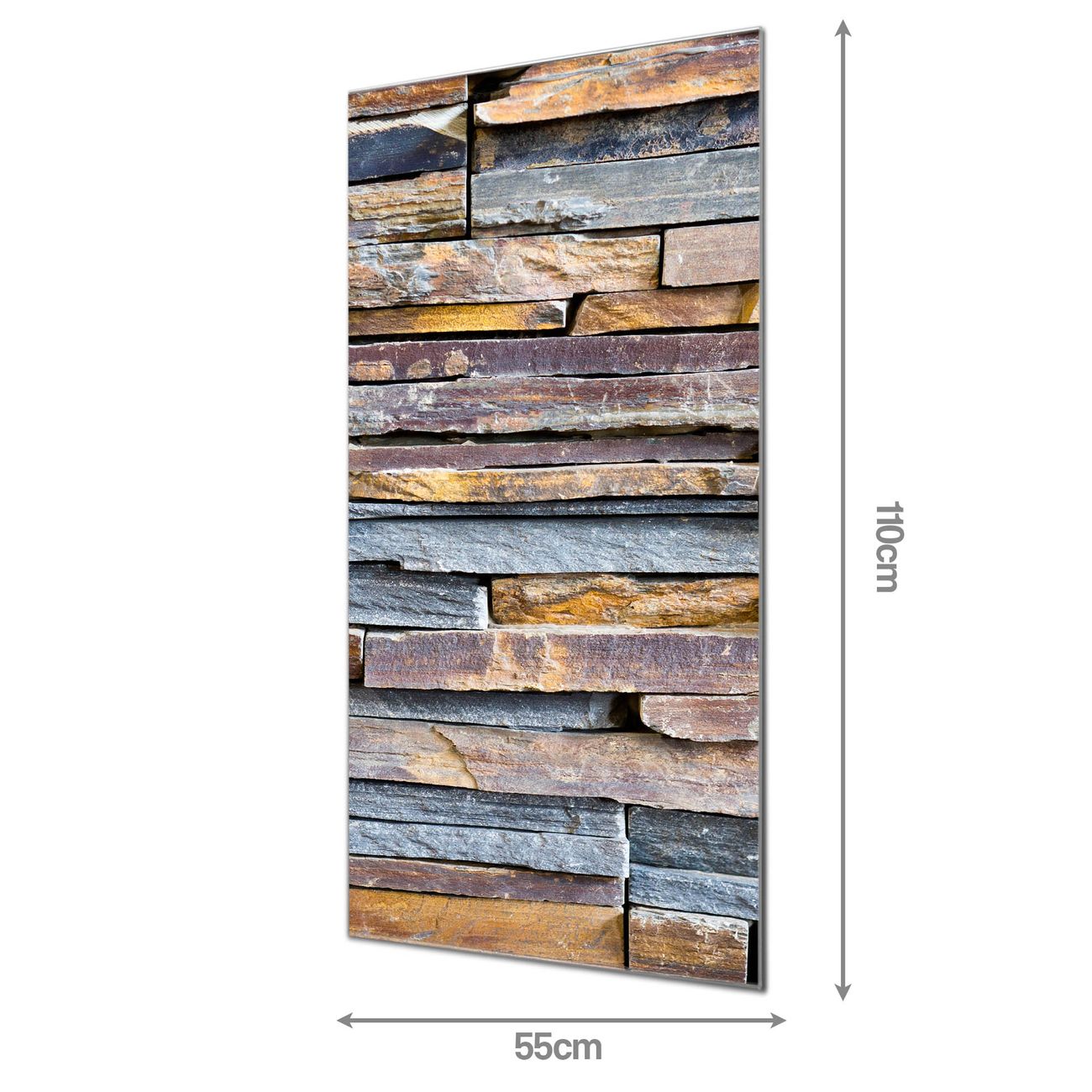 Material  4mm Sicherheitsglas mit Metallrückwand Eigenschaften  farbbrillant, kratzfest, rahmenlos Maße  55x110x0,6cm, 9,08 kg schwer Motiv  Nummer 11233 Naturstein