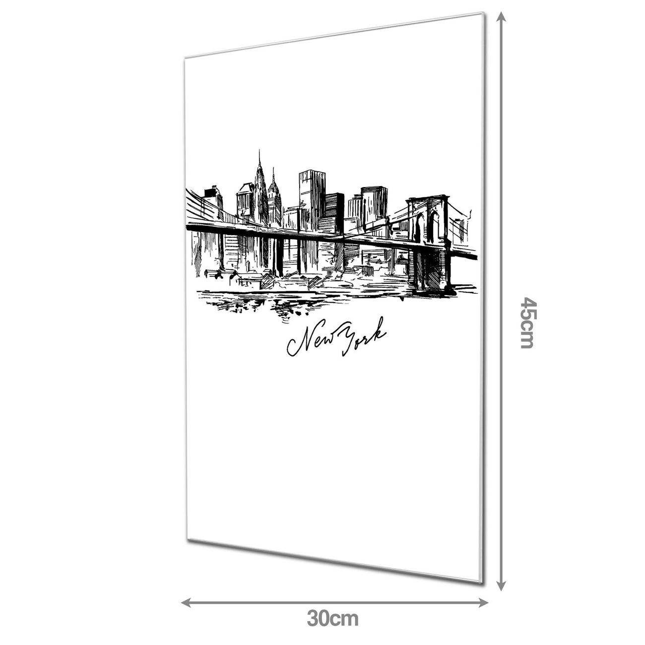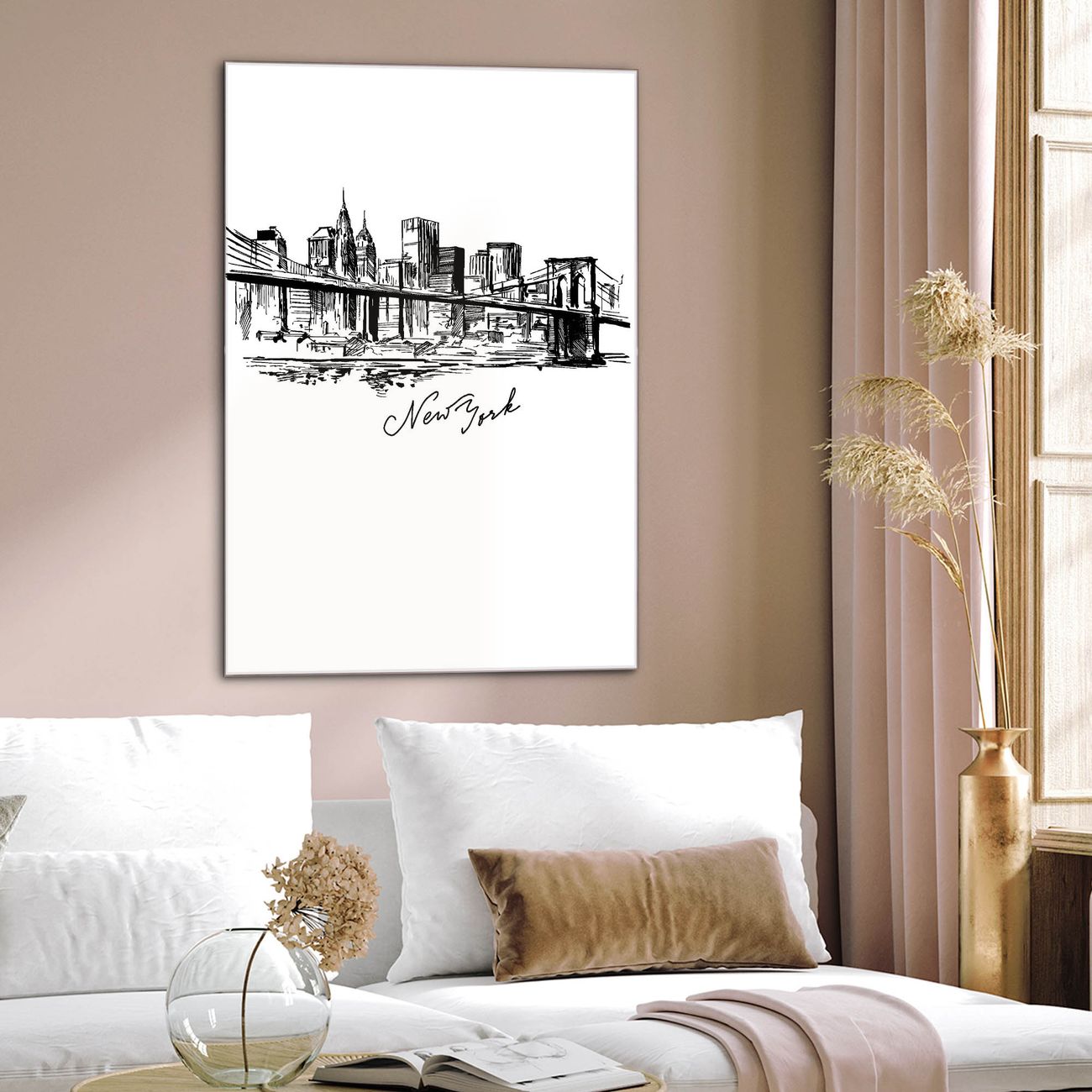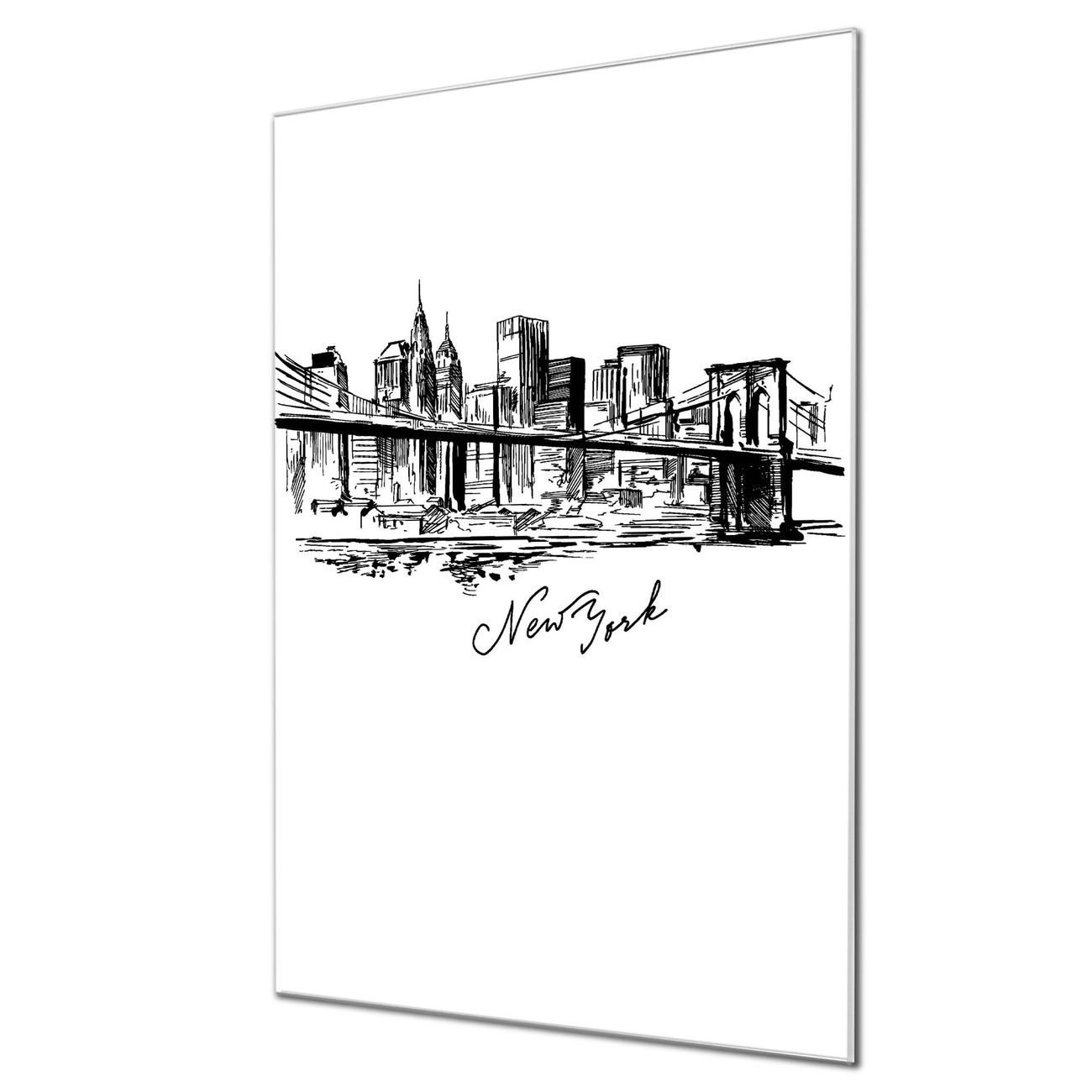 Unsere brillanten Glasbilder im Hochformat von banjado mit Motiv New York Skizze sind der absolute Hingucker! Unsere Banjado Glasbilder sind sehr begehrt, weil sie top verarbeitet sind und sich ganz leicht montieren lassen. Schon mit wenigen Handgriffen hängen sie an der Wand und strahlen mit höchster brillianz. Durch die Ramenlose Herstellung schwebt das Echtglasbild förmlich an der Wand. Das Motiv erscheint besonders ausdrucksstark, hochwertig und ist hinter dem Echtglas geschützt.