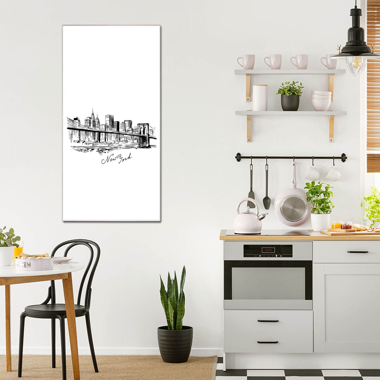 Unsere brillanten Glasbilder im Hochformat von banjado mit Motiv New York Skizze sind der absolute Hingucker! Unsere Banjado Glasbilder sind sehr begehrt, weil sie top verarbeitet sind und sich ganz leicht montieren lassen. Schon mit wenigen Handgriffen hängen sie an der Wand und strahlen mit höchster brillianz. Durch die Ramenlose Herstellung schwebt das Echtglasbild förmlich an der Wand. Das Motiv erscheint besonders ausdrucksstark, hochwertig und ist hinter dem Echtglas geschützt.