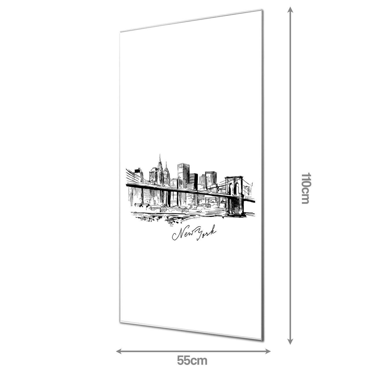 Material  4mm Sicherheitsglas mit Metallrückwand Eigenschaften  farbbrillant, kratzfest, rahmenlos Maße  55x110x0,6cm, 9,08 kg schwer Motiv  Nummer 11722 New York Skizze