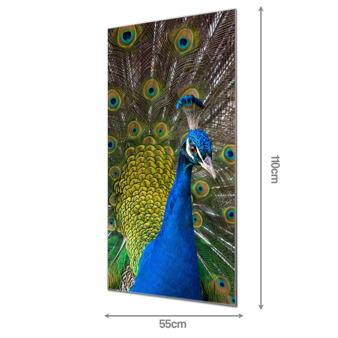 Brillantes Glasbild im Hochformat Pfau