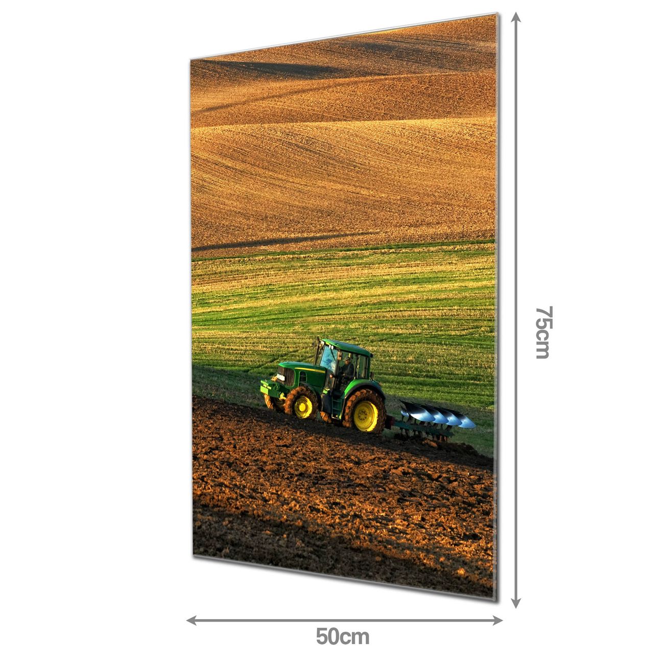 Brillantes Glasbild im Hochformat Pflügen
