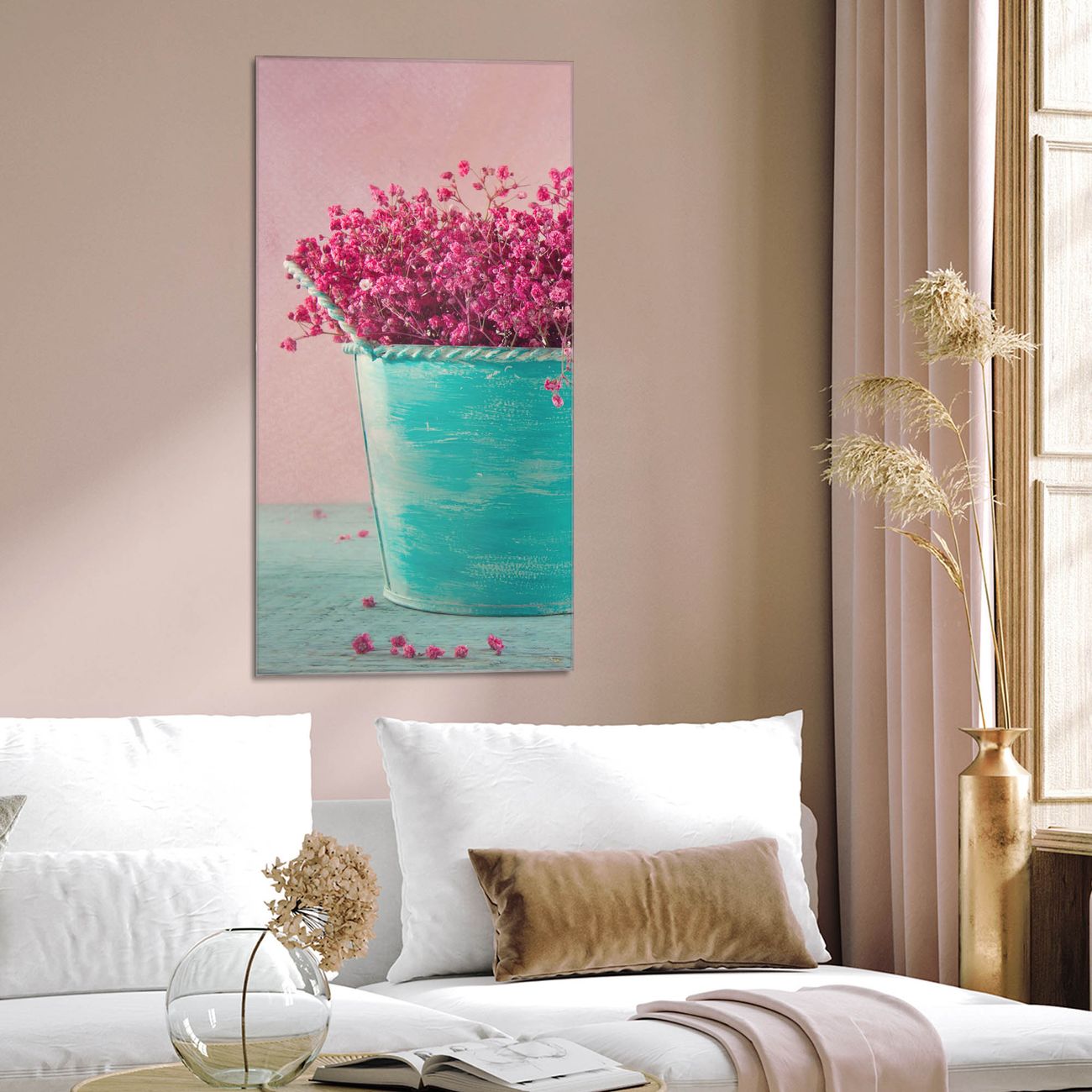 Brillantes Glasbild im Hochformat