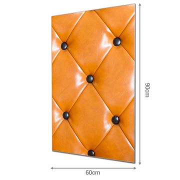 Material  4mm Sicherheitsglas mit Metallrückwand Eigenschaften  farbbrillant, kratzfest, rahmenlos Maße  60x90x0,6cm, 8,10 kg schwer Motiv  Nummer 11932 Polster Orange