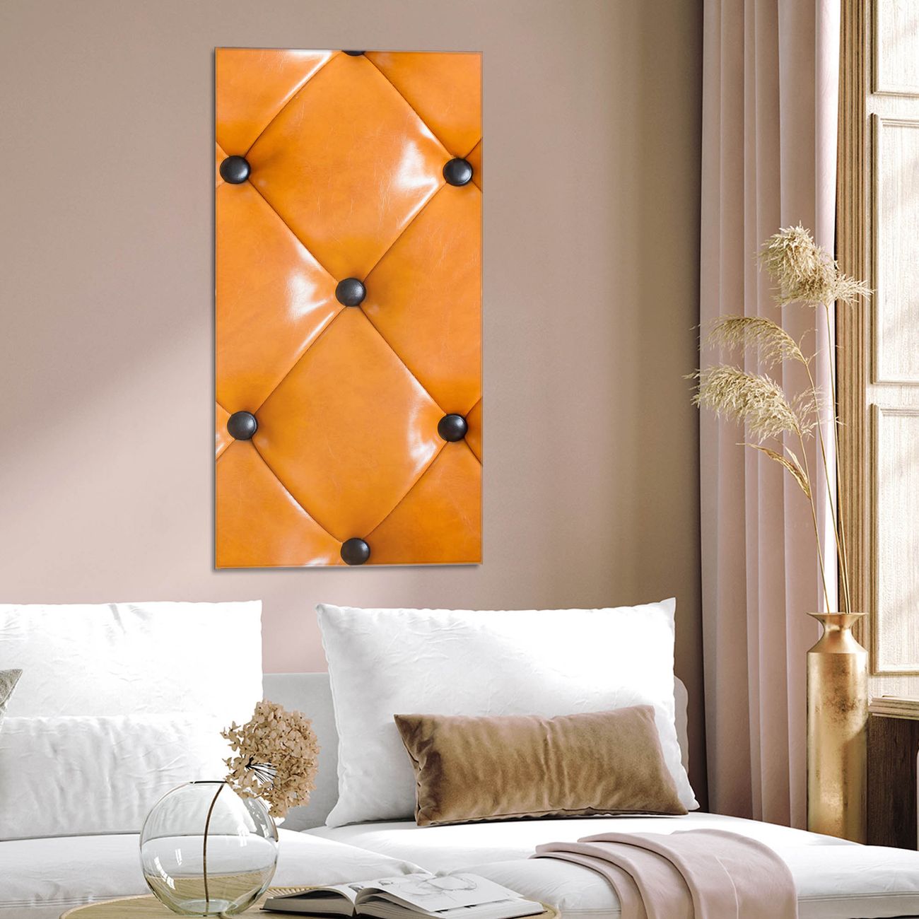 Brillantes Glasbild im Hochformat Polster Orange