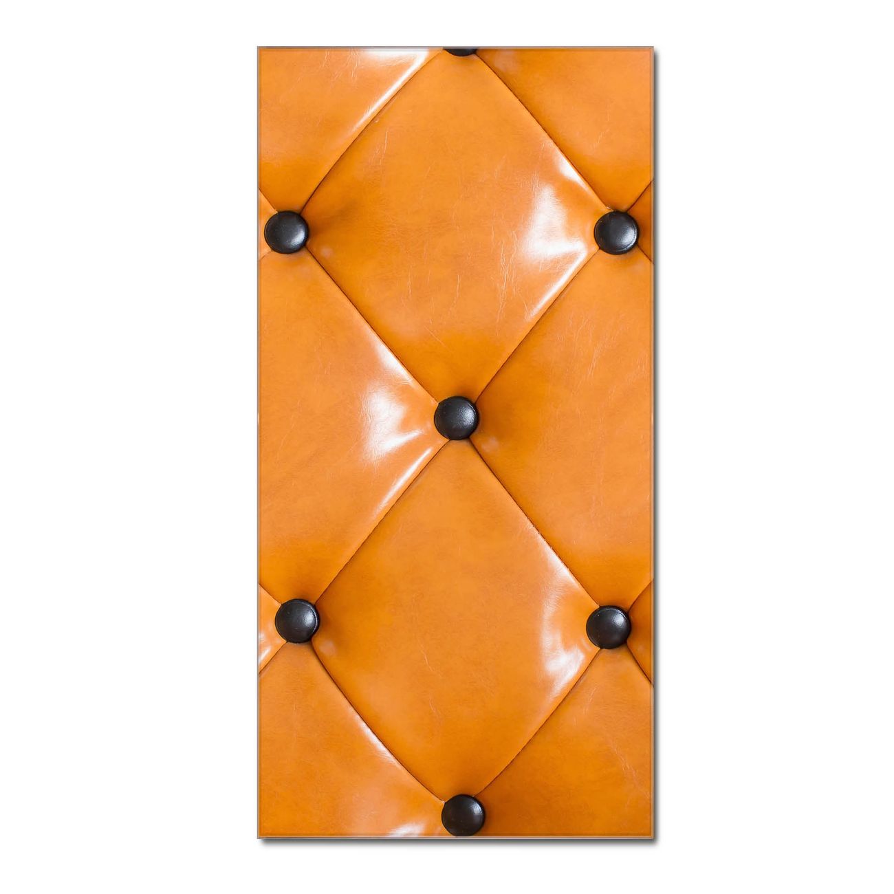 Material  4mm Sicherheitsglas mit Metallrückwand Eigenschaften  farbbrillant, kratzfest, rahmenlos Maße  55x110x0,6cm, 9,08 kg schwer Motiv  Nummer 11932 Polster Orange