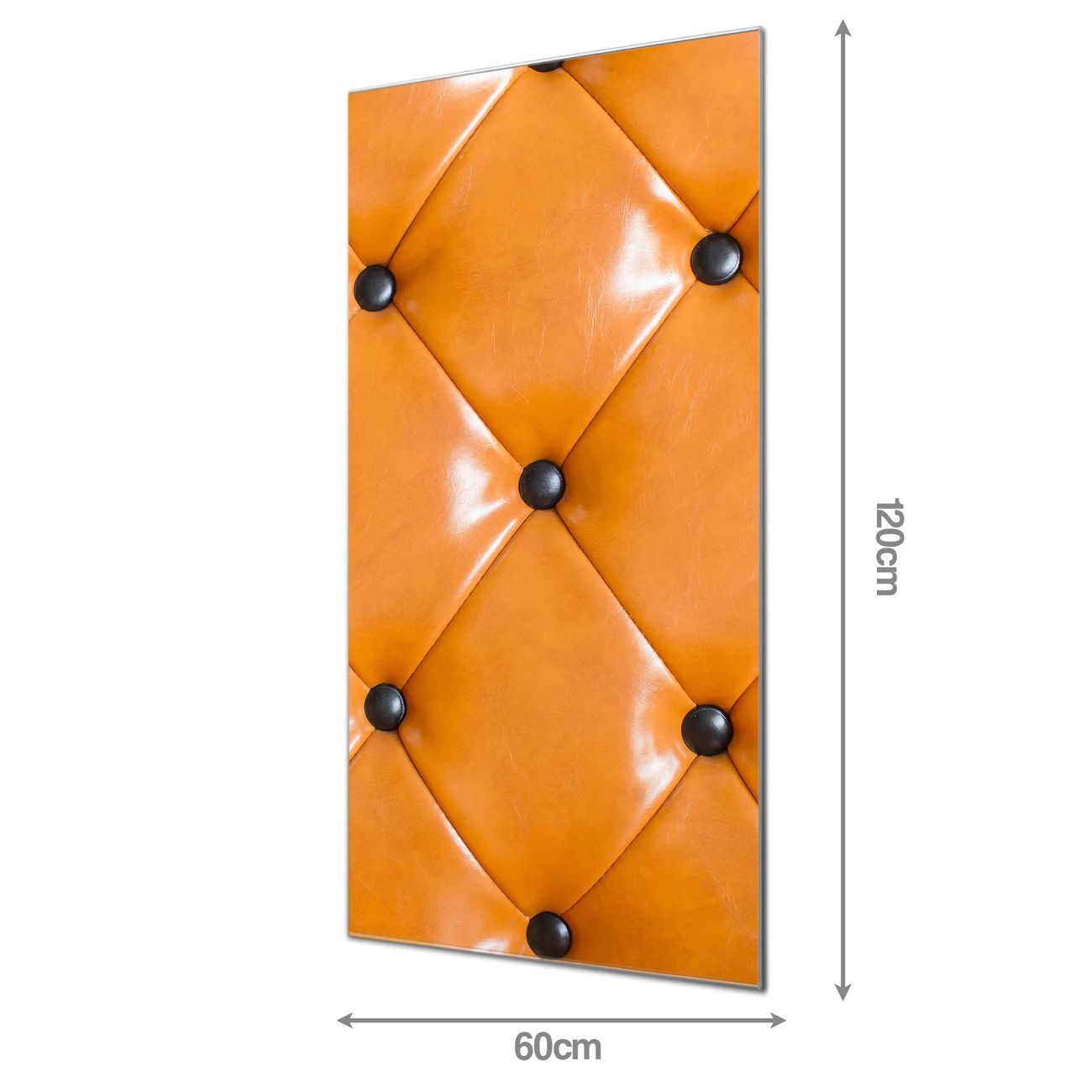 Material  4mm Sicherheitsglas mit Metallrückwand Eigenschaften  farbbrillant, kratzfest, rahmenlos Maße  60x120x0,6cm, 10,80 kg schwer Motiv  Nummer 11932 Polster Orange