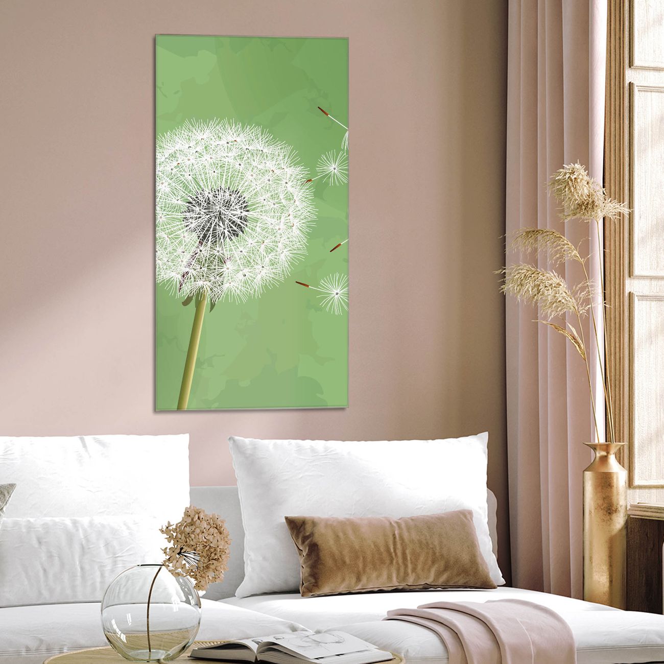 Brillantes Glasbild im Hochformat Pusteblume 3