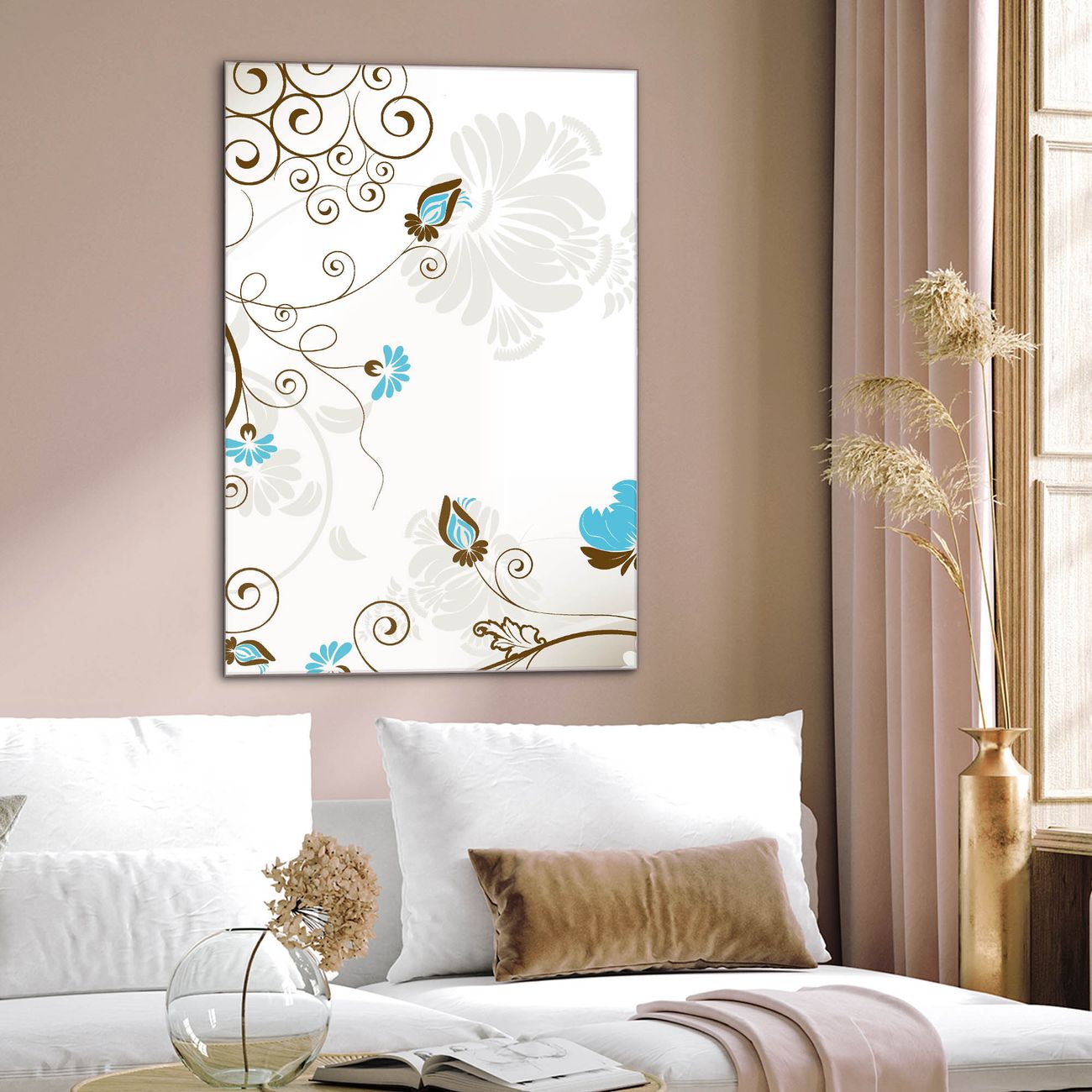 Brillantes Glasbild im Hochformat Rankenrahmen