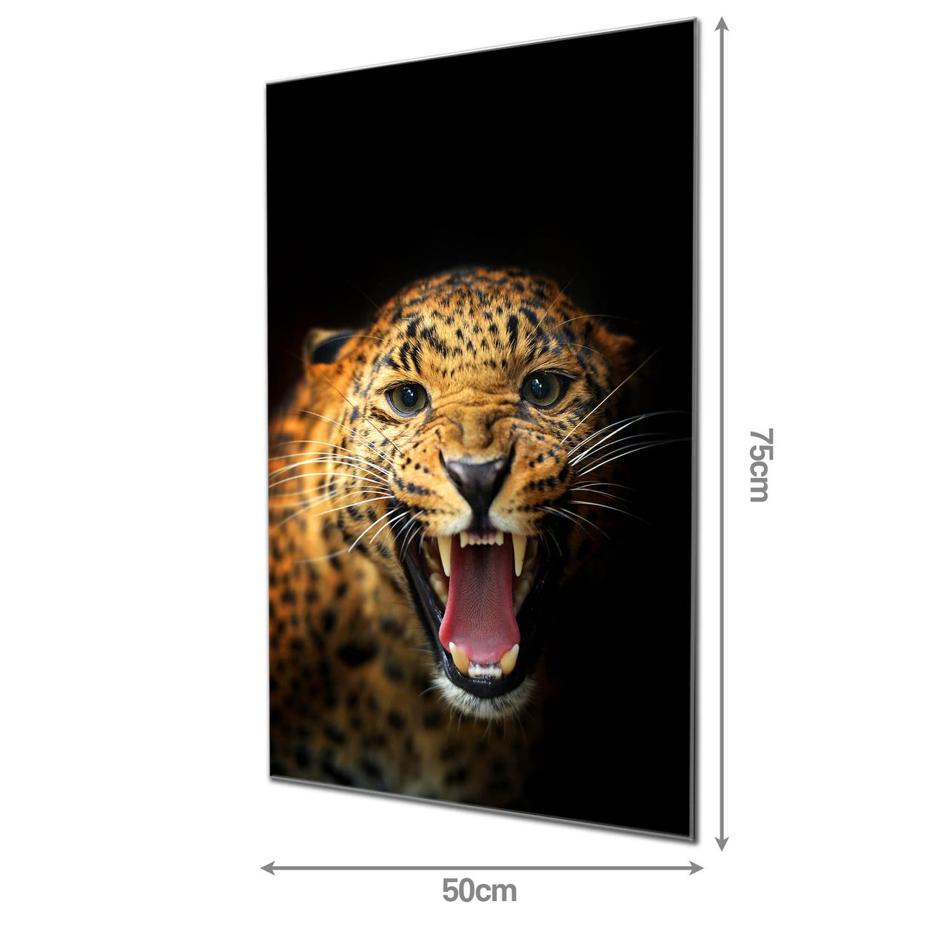 Unsere brillanten Glasbilder im Hochformat von banjado mit Motiv Raubkatze sind der absolute Hingucker! Unsere Banjado Glasbilder sind sehr begehrt, weil sie top verarbeitet sind und sich ganz leicht montieren lassen. Schon mit wenigen Handgriffen hängen sie an der Wand und strahlen mit höchster brillianz. Durch die Ramenlose Herstellung schwebt das Echtglasbild förmlich an der Wand. Das Motiv erscheint besonders ausdrucksstark, hochwertig und ist hinter dem Echtglas geschützt.