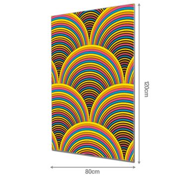Material  4mm Sicherheitsglas mit Metallrückwand Eigenschaften  farbbrillant, kratzfest, rahmenlos Maße  80x120x0,6cm, 14,40 kg schwer Motiv  Nummer 12018 Regenbögen