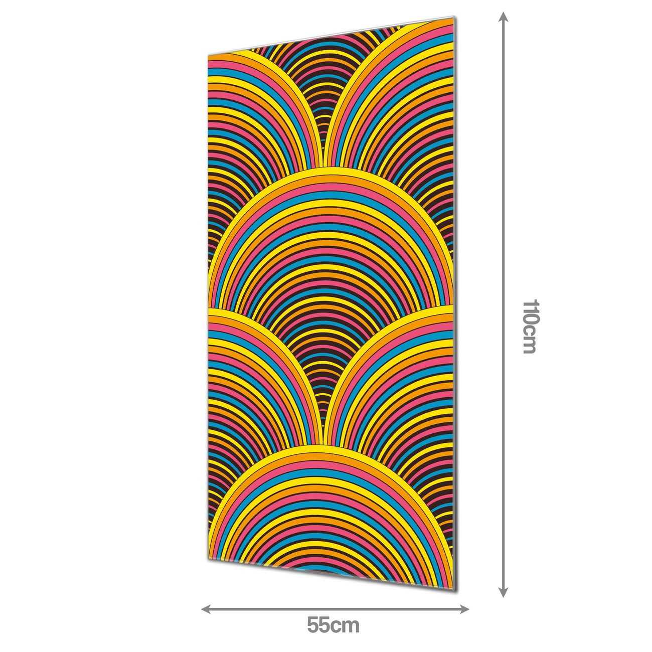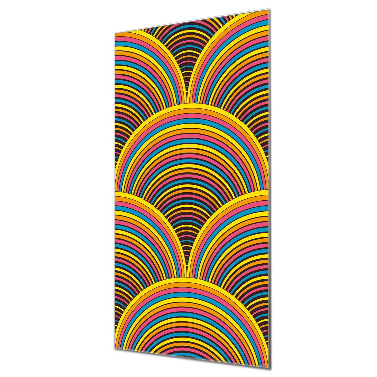 Material  4mm Sicherheitsglas mit Metallrückwand Eigenschaften  farbbrillant, kratzfest, rahmenlos Maße  55x110x0,6cm, 9,08 kg schwer Motiv  Nummer 12018 Regenbögen