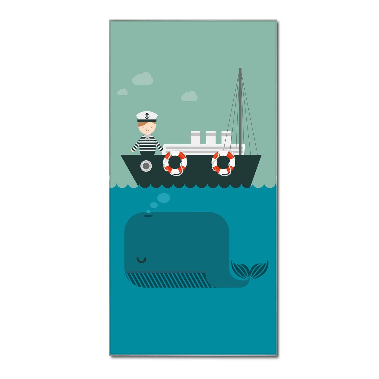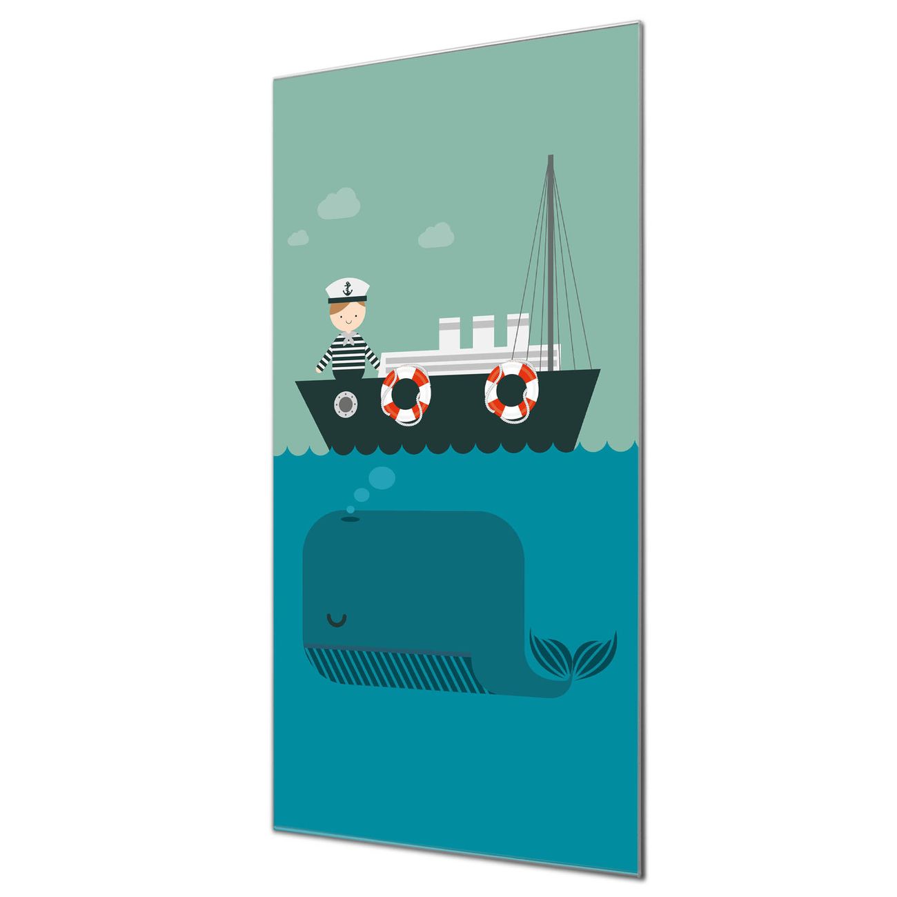 Material  4mm Sicherheitsglas mit Metallrückwand Eigenschaften  farbbrillant, kratzfest, rahmenlos Maße  50x100x0,6cm, 7,50 kg schwer Motiv  Nummer 11930 Rettet die Wale