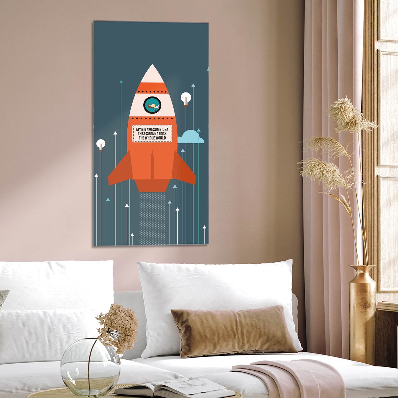 Brillantes Glasbild im Hochformat Rock the World