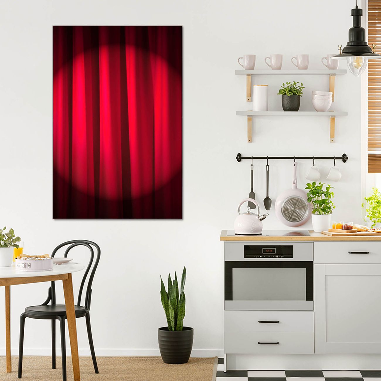 Brillantes Glasbild im Hochformat Roter Vorhang